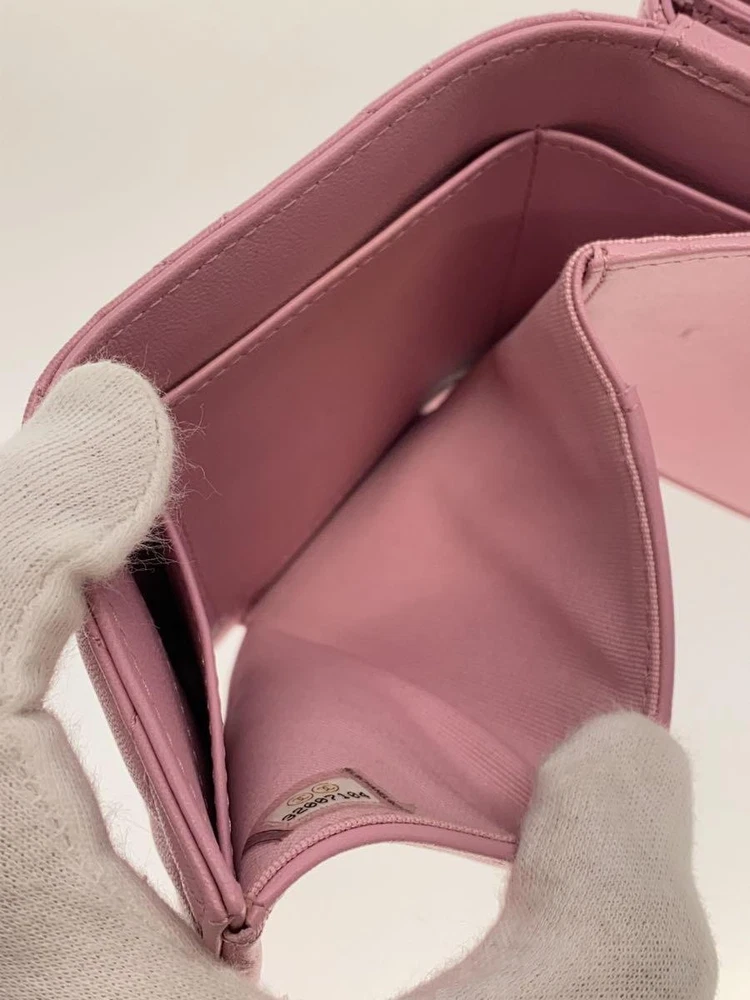Type: Tri-Fold Compact Wallet Brand: CHANEL Material: Leather Department: Women Color: Pink