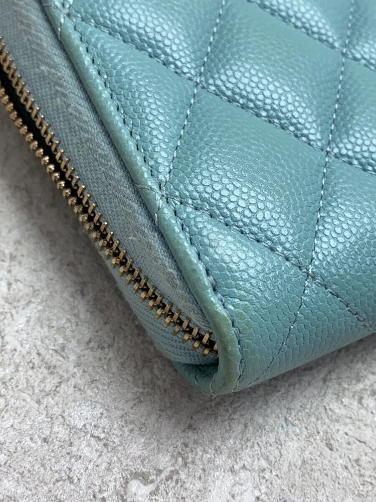 Description CHANEL Zip Around Long Wallet Matelassé Caviar Leather CC Blue Leather F/S Pre-Loved - Condition There is a sense of use, but there is no noticeable scratch or stain. Please check the photos. - Size and Specifications Actual Size (cm): Height 10.5 Width 19 Thickness 2.5 Other Sizes / Additional Details - Thank you very much for your interest. - Please note that this is a pre-owned (used) product. - As it is also available for sale in stores, the condition may change slightly over time. - There may be minor damage or dirt not visible in the photos, and some accessories may be missing . - We manage our inventory carefully, but in rare cases, the product may sell out . - Depending on your monitor or device, the color may appear slightly different from the actual product. - If you have any questions or concerns , please feel free to contact us anytime. Shipping Information FREE SHIPPING - The product will be shipped from Japan . - Shipping Method: Japan Post or DHL or Fedex - Delivery Period: Usually takes 2–3 weeks (Delivery may be delayed due to global events, weather conditions, customs processes, or other unforeseen circumstances. ) Important Notes - Import duties, taxes, and charges are Not included in the product price or FREE SHIPPING cost. - These charges are the buyer's responsibility . - Please check with your country's customs office to determine what these additional costs will be prior to bidding or buying.