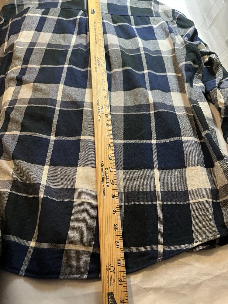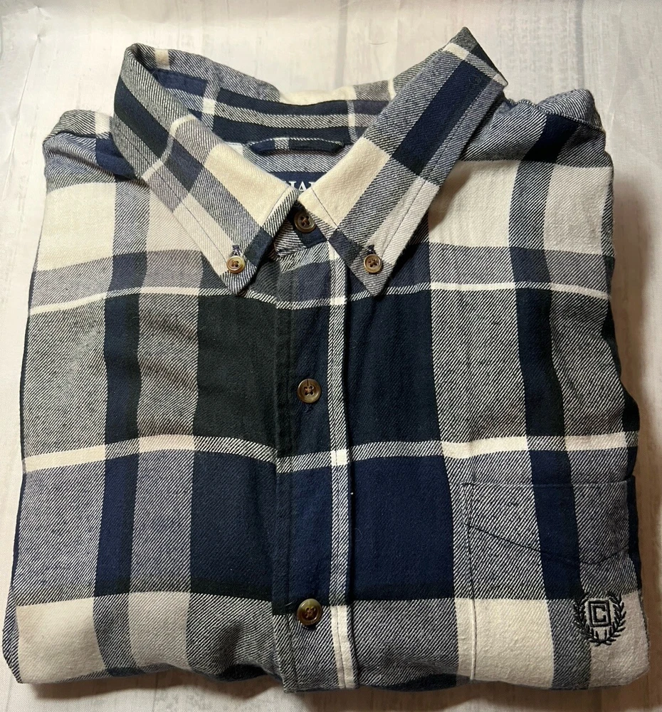 CHAPS Shirt Men Size XXL Performance Flannel Navy Blue/White Plaid lightweight Button Down. New Without tags. See photos for measurements.