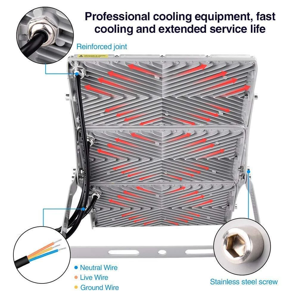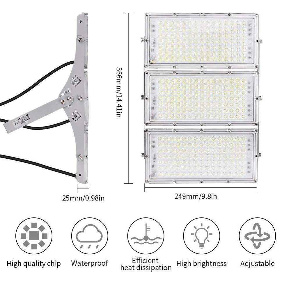 -- CHARON LED Flood Light can be adjusted to the angle you desired to achieve wider angle lighting area. --LED light for outdoor of high strength, corrosion resistance, great heat resistance, and IP66 waterproof. --300 watt led outdoor lighting have anti glare measures, lamps and accessories meet the environmental requirements. --With energy savings up to 85%, you can reduce a tremendous amount of energy consumption. --Reduce cost with LED spot lights from longer lifespans by 2-3x, reduced maintenance costs, and rebates. --Safety and Security With an increase in light quality and output, visibility becomes better. --In the same way, fans and visitors can feel safer in the stadium or in the parking lot with well-lit areas. --Widely Applications for warehouse, yards, patios, parking lot, stadiums, street, court, driveways, etc. Specification: Power: 300W Input voltage: AC 110-120V Power factor: 0.95 Color temperature: cool white 6000K-6500K Color rendering index: 80 LED type: SMD 2835 Number of LEDs: 315 pcs Luminous flux: 24000 Lm Size (length x width x height): about 249*371*25 mm/9.80*14.61*0.98inch Weight: about 2.2 Kg Housing material: die-cast aluminum Mask material: PC Beam angle: 120° Protection level: IP66 Working temperature: -35℃ to +55℃ LED life:> 50000 hours Energy efficiency rating: A++ Certification: CE & Rohs Packing List: 1*LED Light 1*Installation Manual 【Super Bright & Energy Saving】CHARON 300w LED Flood Light produces 24000lm high brightness(1800W Incandescent Equivalent) and saves 85% on your electricity bill. Provide super brightness and extra security to your playground, court, swimming pool, patio, yard, driveways, entryway, parking lot etc. 【Wider Lighting Area】Customize your bright wider coverage area with CHARON 300w outdoor security lights, which can pivot 160 degrees side to side and U shape bracket pivot 180 degrees up and down, This security light can be installed flexibly to light up a large and dark areas without disturbing your neighbors. 【Save on Maintenance】Robust die-cast aluminum housing and shock-resistant PC lens ensure excellent heat dissipation and long-lasting performance. And the floodlight is designed with a thickened fin-type heat sink, which means it acts like a radiator to dissipate heat. 【Release your worries】The lifespan(50,000 hours) of this flood light is ten times that of the traditional incandescent light. IP66 waterproof protection rating means our floodlight is perfect for outdoor locations like warehouse, yards, patios, parking lot, stadiums, driveways, etc. 【Warranty Guarantee】CHARON offers 24-month warranty for CHARON led flood light. If there is any problem with CHARON 300W flood light outdoor, please feel free to contact us, we will try our best to help you solve it.