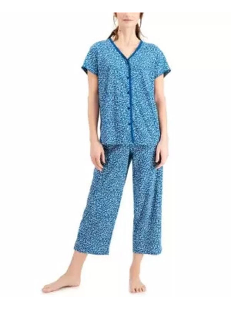 CHARTER CLUB INTIMATES Intimates Teal Cropped Floral Sleep Pants XS