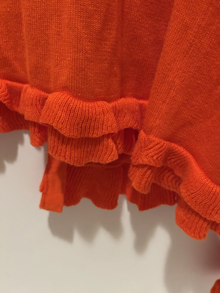 Elevate your wardrobe with the Charter Club tangerine open sweater, a versatile addition that brings a touch of feminine energy to your workwear or travel attire. Fashioned with a classic crew neck and long sleeves, this cardigan in size XL offers a regular fit for all-day comfort. Its tight-knit fabric, a soft blend of cotton and rayon, ensures both warmth and breathability.The sweater's design features a ruffled hem for a hint of flair and a button closure that adds a sophisticated touch. Machine washable for easy care, it's ideal for those who appreciate a preppy, yet effortless style. Whether layered over a blouse for the office or draped over a sweater for a fall outing, this piece is a timeless choice for any season. The sweater is preowned never used.