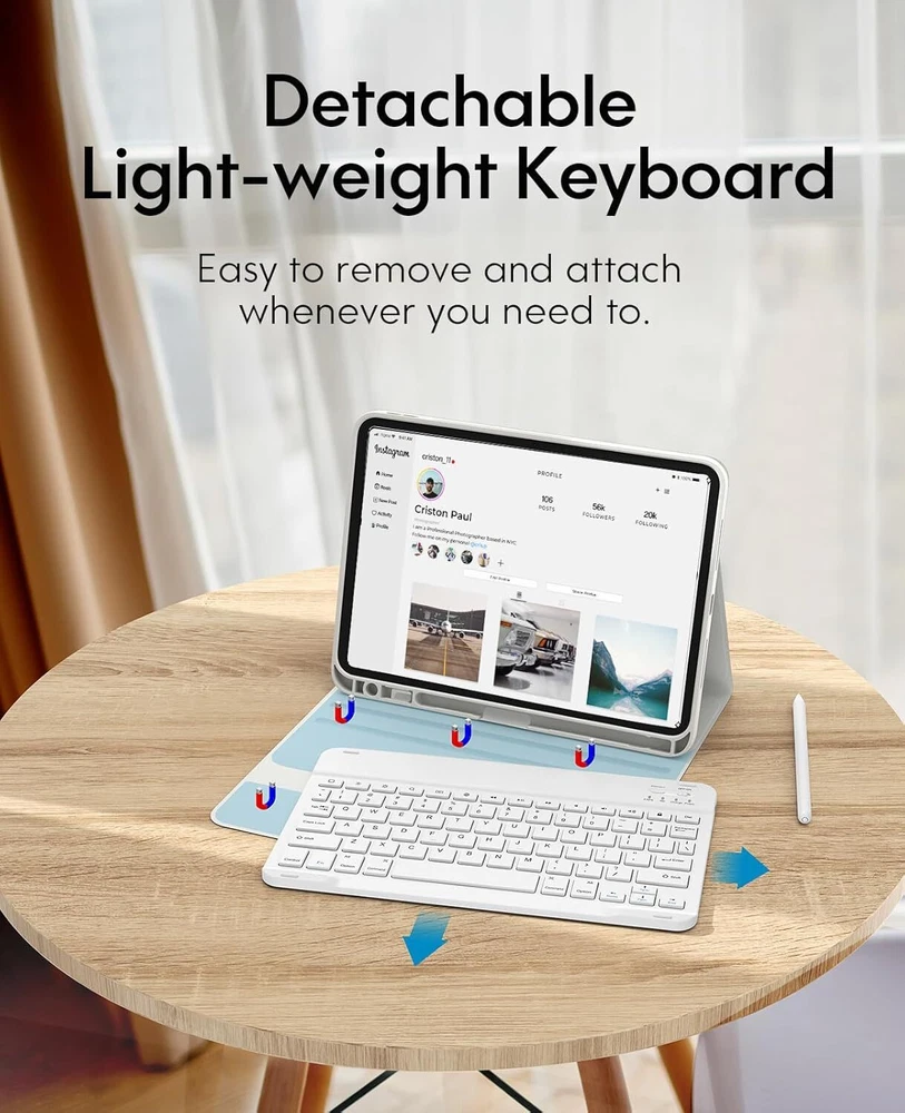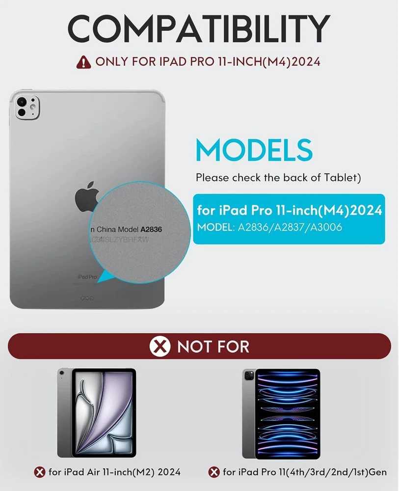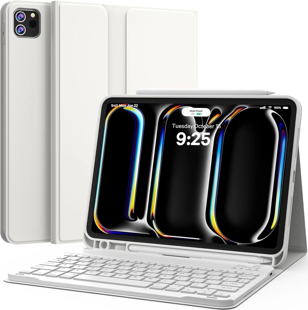 CHESONA for iPad Pro 11 Inch (M4) 2024 Case with Keyboard, Magnetic white Product Details Brand: CHESONA Color: white Compatible Devices: Tablets Form Factor: Cover Material: Faux Leather 【Compatibility】Designed for iPad Pro 11 inch (M4) 2024 (Model: A2836 / A2837 / A3006). Before you order, please check the back of iPad to confirm the model number. Please Note: The Tablet and Pencil are NOT included 【Magnetically Detachable Keyboard】The intelligent detachable wireless magnetic keyboard that lets you can switch between a lightweight laptop and your tablet.The strong magnetic connection ensures a stable and reliable attachment, preventing accidental detachment and providing a seamless user experience whether you're working, browsing, or traveling. 【Mutiple Angle Ajustment】Find your ideal typing comfort with our keyboard's multiple angle adjustments. Easily adjust the tilt to suit your personal preference, whether you prefer a flat surface or a slight incline. The versatile design ensures you can work for hours without fatigue, promoting better posture and increased productivity. The sturdy adjustment mechanisms keep your keyboard securely in place, so you can focus on your tasks without distractions. 【Precision Cutouts & Comprehensive Protection】 Designed with accuracy, the case provides precise incisions for easy access to tablet functions, including the camera, speakers, and ports, without any obstruction. The keyboard case offers full-edge protection with a precise fit, safeguarding for iPad from bumps, scratches, and daily wear. Constructed from high-quality materials, the keyboard case not only protects your tablet but also adds a touch of style. 【Type-C Rechargeable】Experience hassle-free power with our USB rechargeable keyboard. Say goodbye to disposable batteries and enjoy the convenience of a built-in rechargeable battery. Simply connect to any USB port to charge, and enjoy hours of uninterrupted typing. The environmentally friendly design reduces waste and saves you money in the long run. Stay powered up and productive with our USB rechargeable keyboard.