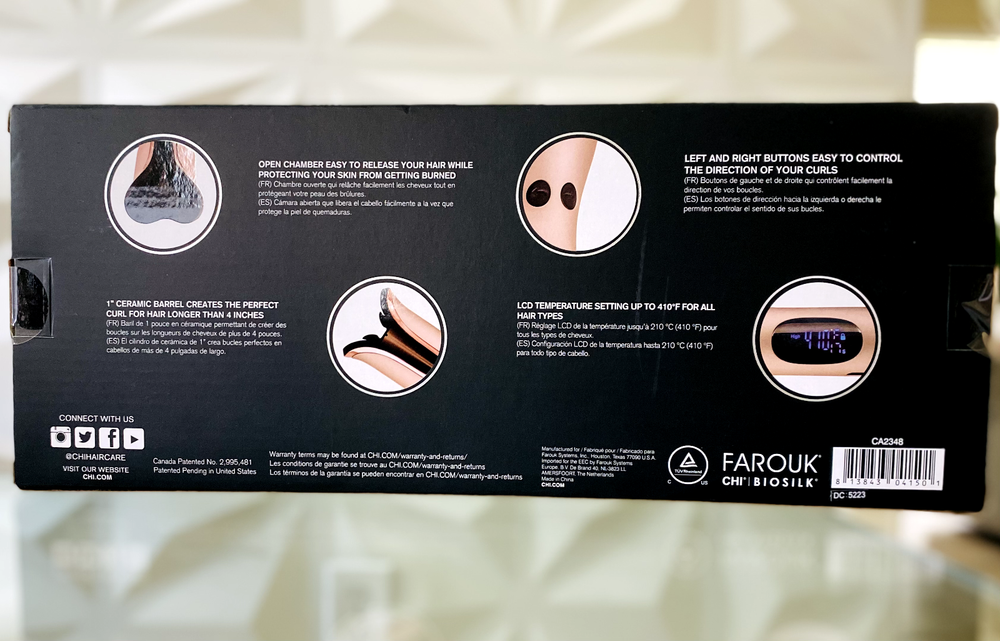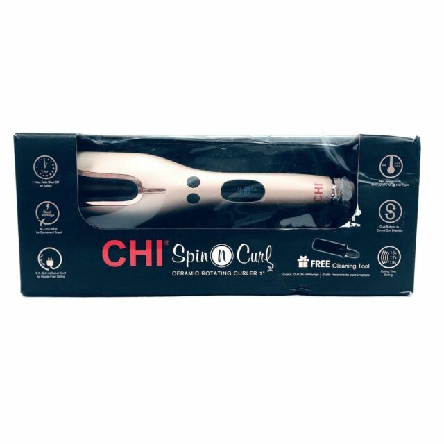 Material:CeramicPower:25Wgtin13:0813843041501UPC:0813843041501Brand:CHIDepartment:UnisexType:Rotating Curling IronModel:CHI Spin n CurlHair Type:All Hair TypesPower Source:ElectricMaximum Temperature:410 °FGTIN:0813843041501Heating Plate Material:CeramicColor:PinkNumber of Temperature Settings:3Barrel Size:1 in