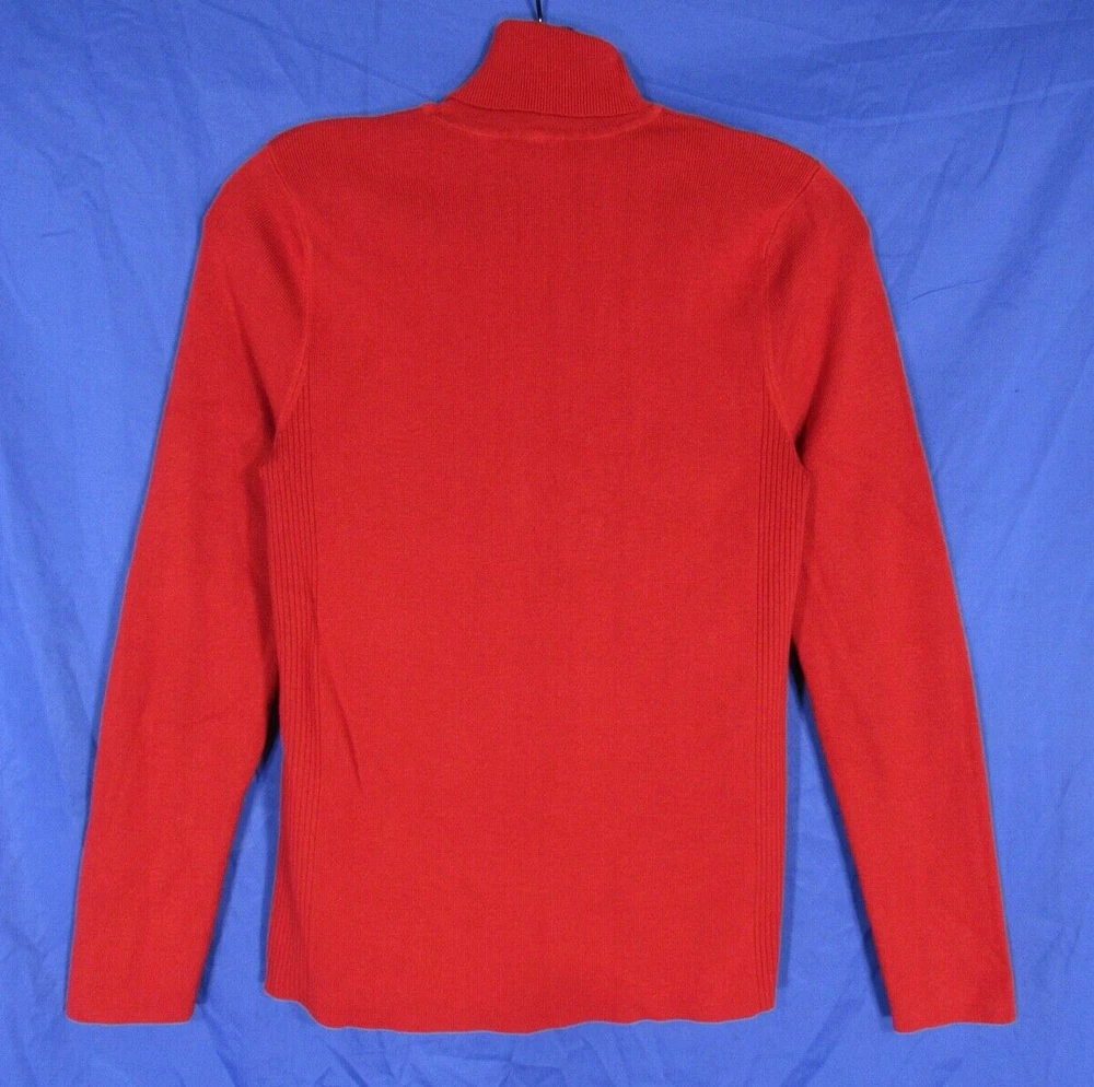 CHICO'S Solid Red STRETCHY Ribbed Knit TURTLENECK Body-Hugging SWEATER 1 (US M)