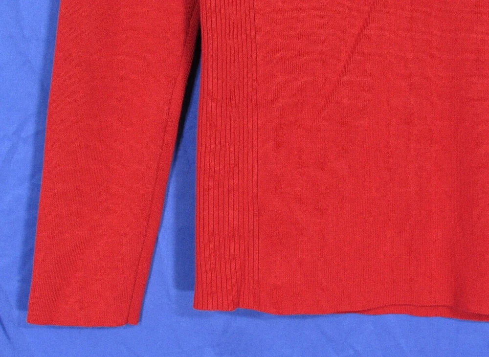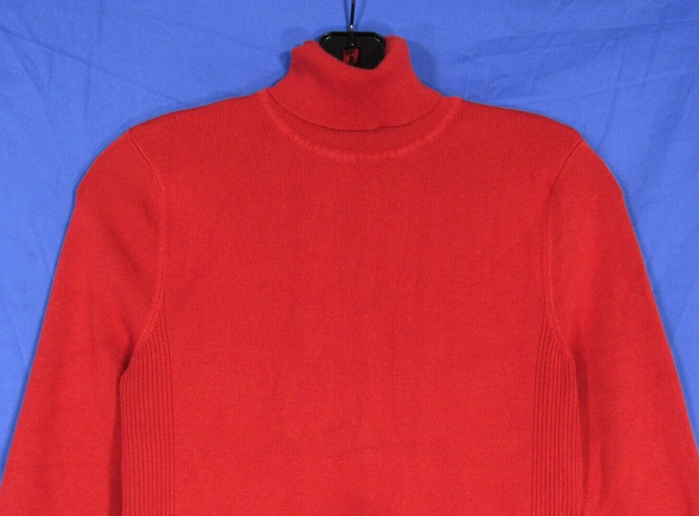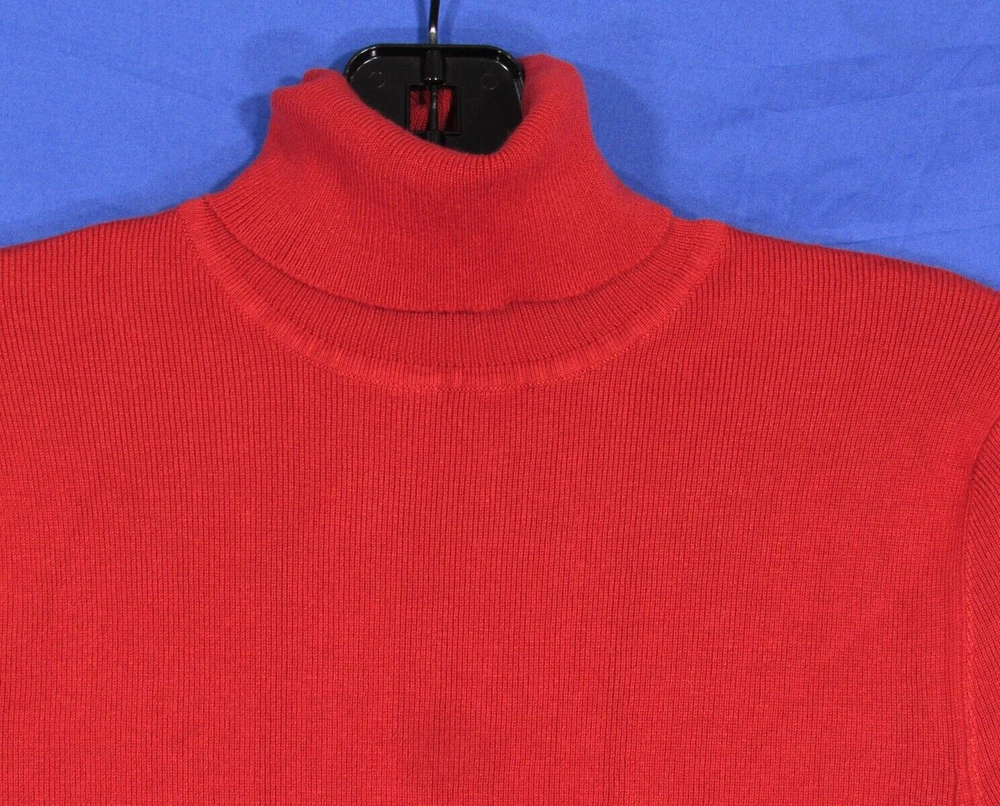 Brand: Chico's Season: Fall, Winter Knit Style: Tight-Knit Fabric Type: Knit Style: Pullover Pattern: Solid Features: Lightweight Occasion: Business, Casual Size Type: Regular Vintage: No Sleeve Length: Long Sleeve Department: Women Neckline: Turtleneck Material: Polyester, Rayon Size: M Theme: Classic Color: Red Type: Sweater