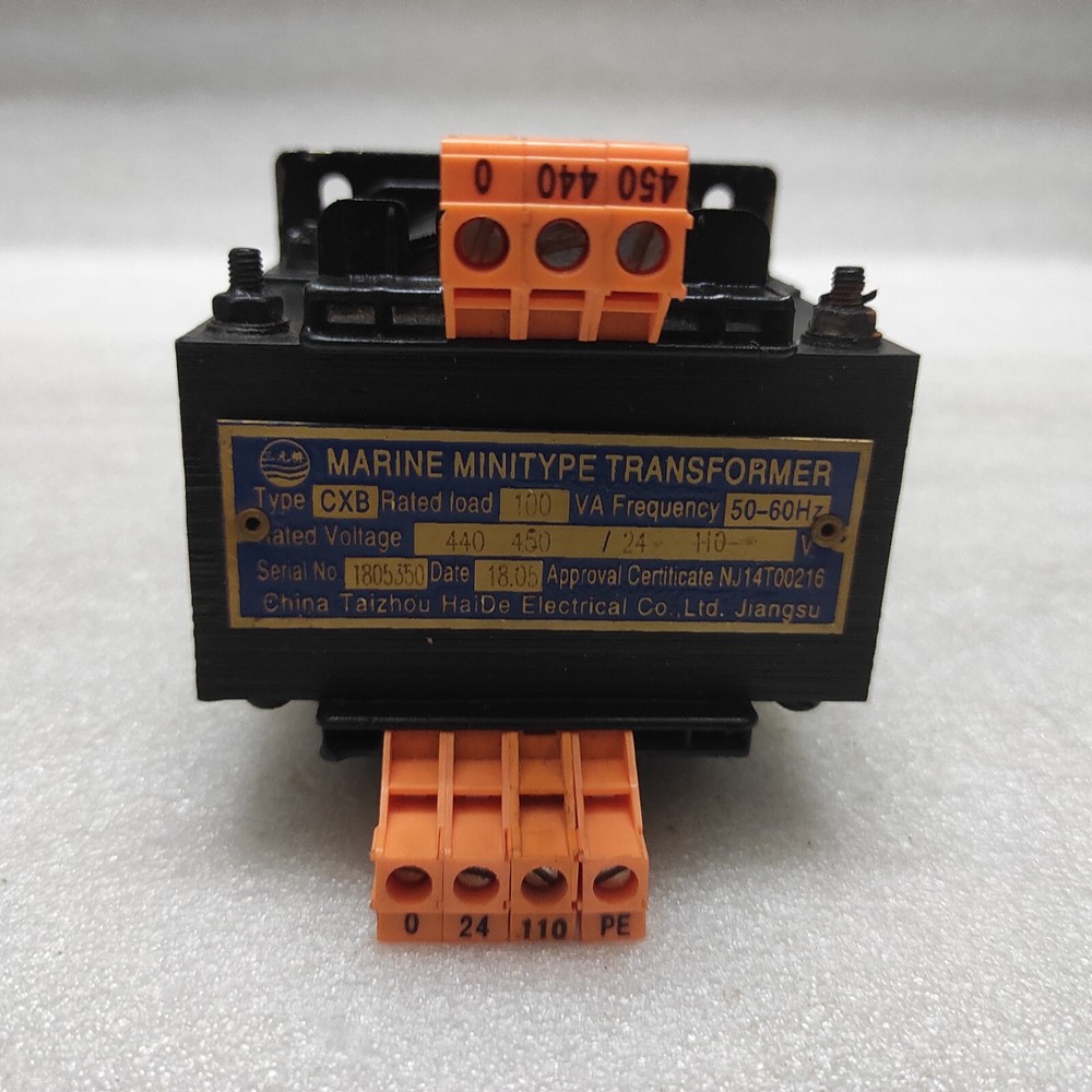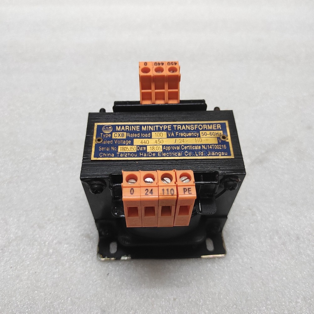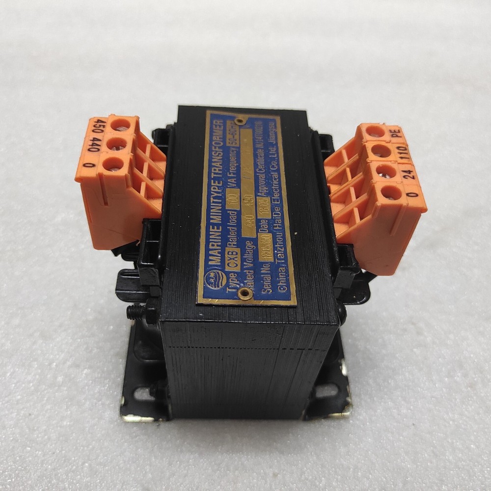 We are pleased to offer CHINA TAIZHOU HAIDE CXB MARINE MINITYPE TRANSFORMER PRI 440-450V SEC 24-110V Product Detail: CHINA TAIZHOU HAIDE CXB MARINE MINITYPE TRANSFORMER PRI 440-450V SEC 24-110V TYPE: CXB RATED LOAD: 100VA RATED VOLTAGE: 440-450V/24-110V Shipment processing time: All orders are processed within 1-2 business days. Orders are not shipped or delivered on weekends or holidays. Shipment confirmation & Order tracking: You will receive a Shipment Confirmation email once your order has shipped containing your tracking number(s). The tracking number will be active within 24 hours. Customs, Duties and Taxes: We are not responsible for any customs and taxes applied to your order. All fees imposed during or after shipping are the responsibility of the customer (tariffs, taxes, etc.). Damages: In case of damage or lost of shipment during transit, We will investigate the matter and provide the satisfactory resolution. Returns Policy: We offer return or exchange of ordered item up to 30 days of receipt of goods in subject to certain condition. In case of damaged goods we shall offer the replacement or refund for the ordered item. If you require any more details, request you to send us the direct message through eBay for early resolution. Thanks