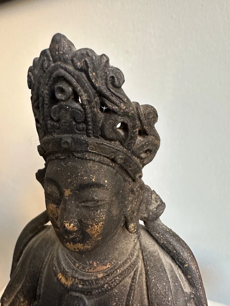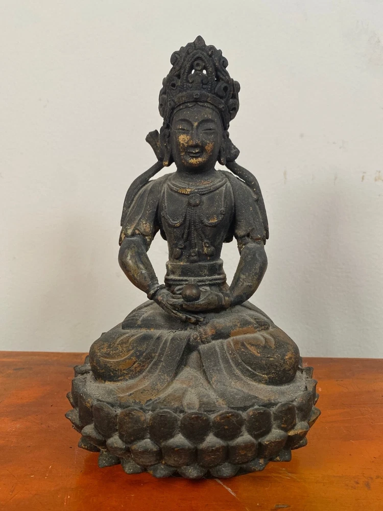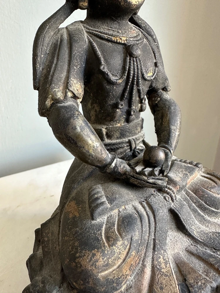 CHINESE CAST IRON MING DYNASTY STYLE ‘SEATED GUANYIN’ STATUE