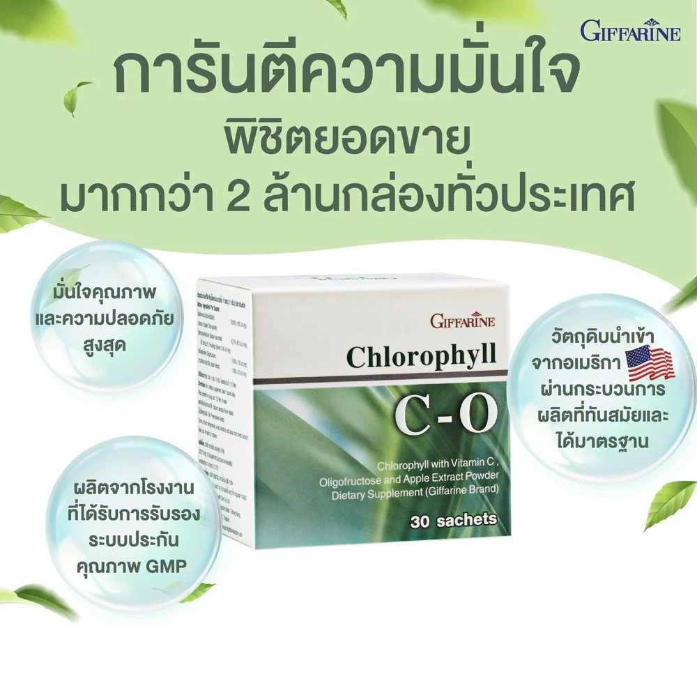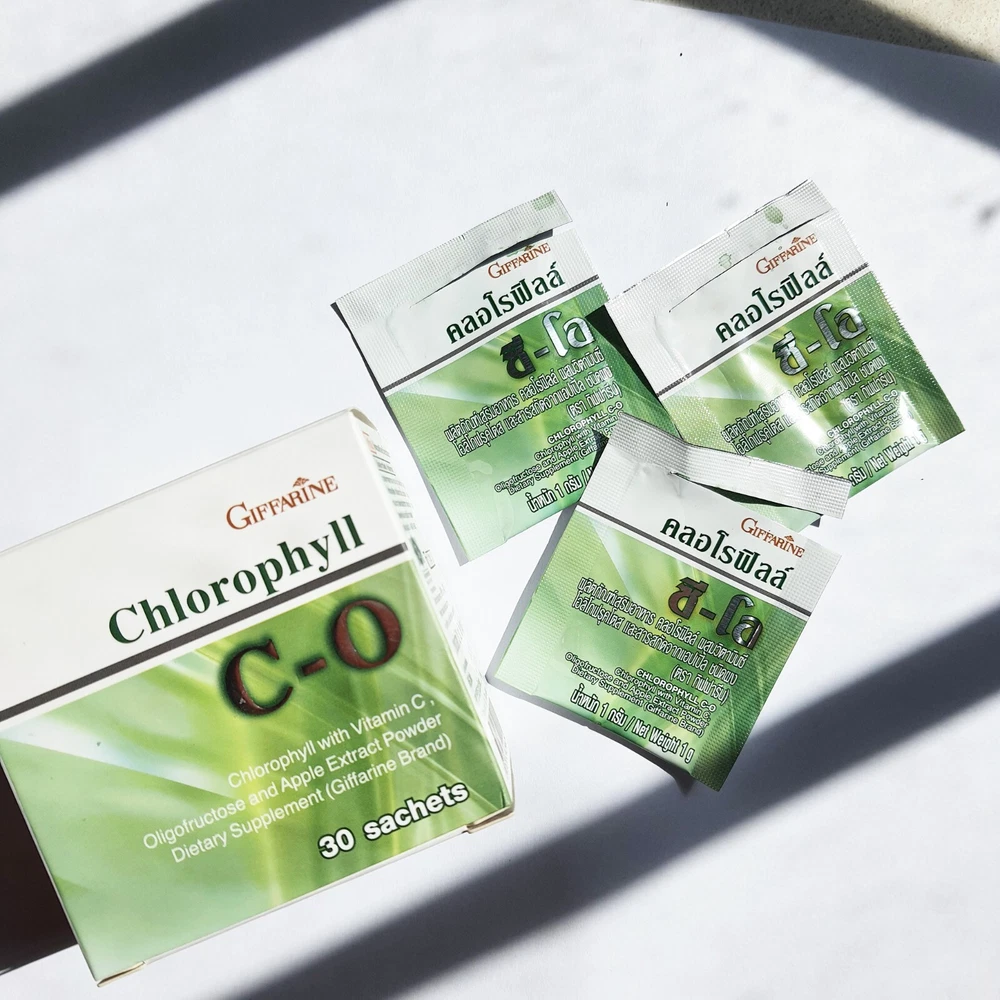Chlorophyll Diet Slim Weight Control Fiber Detox No Sugar Good Health Skin Care . CONDITION : New BRAND : Giffarine TYPE : Supplement for Healthy SIZE : 1 pack = 30 Sachets (1 sachet = 1 g) NOTIFICATION NUMBER : 13-1-03440-1-0077 . Packed with benefits from powerful ingredients that help fight free radicals, detoxify the body, boost immunity, control harmful bacteria, stimulate the digestive system, enhance calcium absorption, and reduce unpleasant body odors. Backed by various research studies, chlorophyll has been shown to inhibit several types of carcinogens. Combined with apple extract and vitamin C, it also helps reduce inflammation, slow down aging, and stimulate collagen production. . Simply mix "Giffarine C-O Chlorophyll" with 1.5 liters of water and refrigerate for a refreshing drink throughout the day. It helps nourish your body from within, keeping you energized and ready for any activity. Perfect for everyone in the family, especially those who want to maintain good health, glowing skin, a healthy digestive system, and smooth bowel movements—or those dealing with unwanted body or bad breath odors. . DIRECTIONS : Take 1 sachet (1 gram) daily mixed with 1.5 liters of water. Can be eaten all day long. For best quality, it should be consumed within 1 day . FDA Registration Number : 13-1-03440-1-0077 Packaging Size : 1 pack = 30 Sachets (1 sachet = 1 g) Net Wt. : 60 g. . About Giffarine : Giffarine is a trusted brand renowned for its commitment to quality in health and dietary supplements. We prioritize natural ingredients and rigorous quality control processes to ensure safety and effectiveness in all our products. . SHIPPING & HANDLING : - Shipping via Air Mail package. - Product will be shipped from Thailand with Tracking Number - The buyer is responsible for paying import taxes. - Item will be shipped within 1-2 business days after received your payment. - Delivery Time America 2-4 Weeks . RETURN & CLAIM : After receiving an item. If you are unsatisfied you can return the item for a full refund within 30 days. The item must be returned in original condition. . Thank you very much for your purchasing. . Welcome to my store every times. Siam910-4289