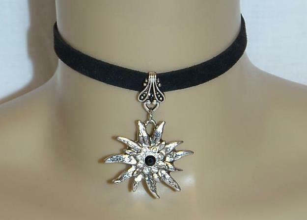 CHOKER Necklace EDELWEISS FLOWER Pendant German Oktoberfest Dirndl Dress NEW