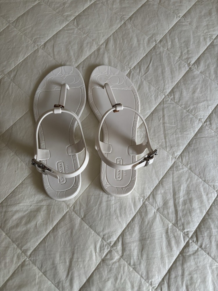 CHRISTMAS SALE! COACH A6307 White T-strap Jelly Sandals in Women’s Size 6B EUC