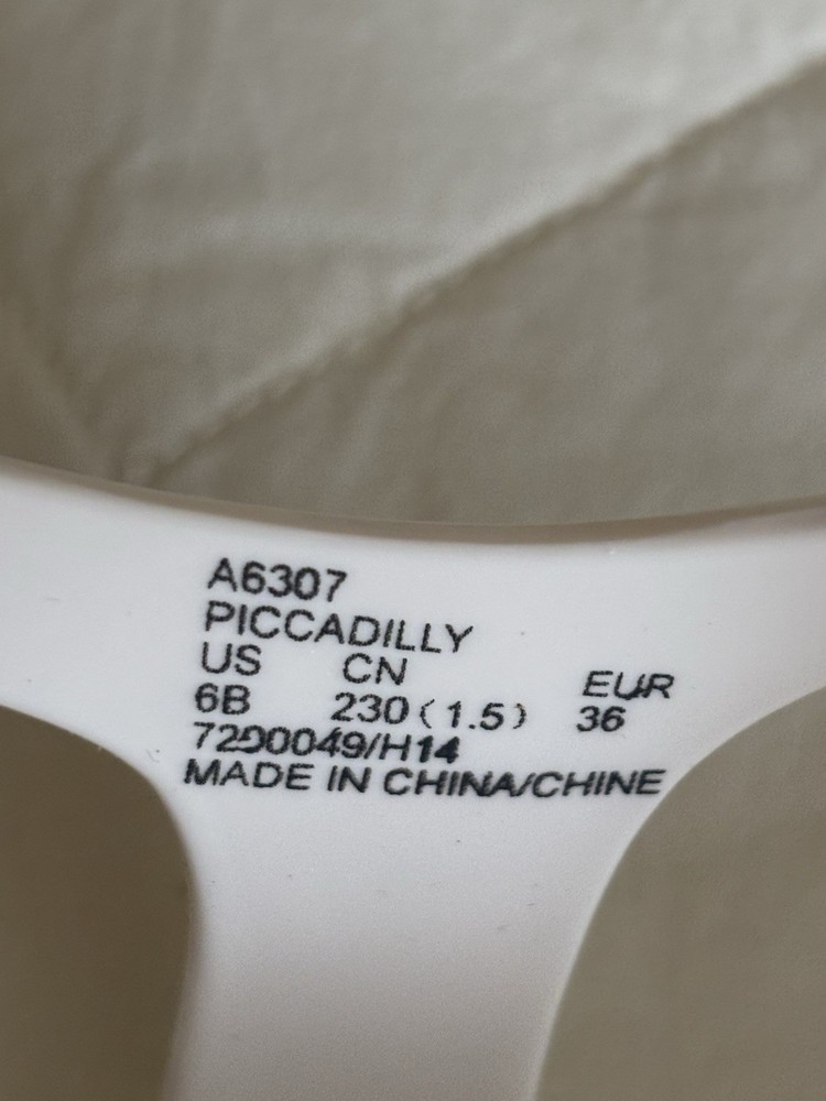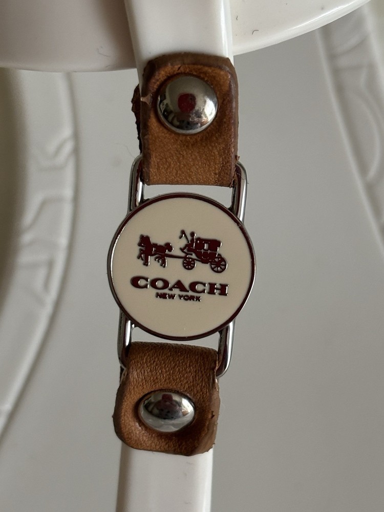 US Shoe Size: 6 Closure: Buckle Color: White Accents: Logo Personalize: No Style: Flat Model: piccadilly Vintage: No Upper Material: PVC Heel Style: Flat Pattern: Solid Occasion: Casual Customized: No Season: Spring, Summer Seller Notes: “These sandals were only worn once to a wedding, and are in excellent condition.” Type: Sandal Heel Height: Flat (Under 1 in) Features: Ankle Strap EU Shoe Size: 36 Department: Women Brand: Coach Theme: Christmas