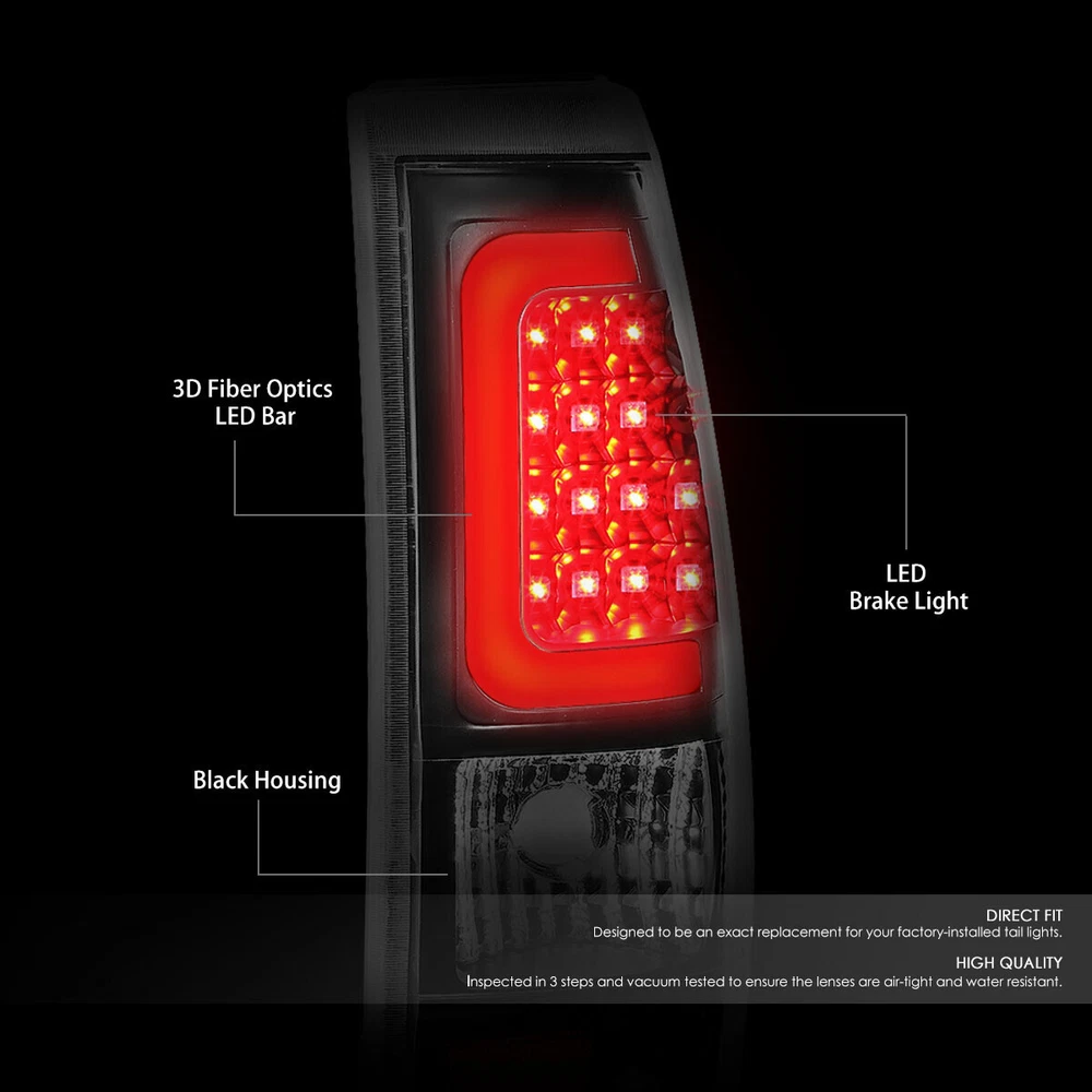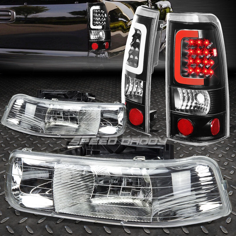 Welcome to Speed Daddy Store Home About Us Feedback Add To Favorites New Arrivals Ending Soon Contact Us CHROME CRYSTAL HEADLIGHT+CORNER+BLACK 3D LED BAR TAIL LIGHT FOR 99-02 SILVERADO Product Description A headlight (headlamp) is a lamp attached to the front of a vehicle to light the road ahead. Headlight performance has steadily improved throughout the automobile age, spurred by the great disparity between daytime and nighttime traffic fatalities. Headlights are one of the most important components of your vehicle; they allow you to see the road in front of you clearly during the night and in any bad weather that may arise. Our headlights upgrade the face of your vehicle with clear style and extreme range. Tail lights are a necessity to anyone wanting to add that custom look to their car or truck. Tail lights are perfect for replacing any broken or faded factory tail lights, and give your car or truck an awesome new appearance. Compared to other styling modifications, our tail lights are relatively inexpensive and extremely easy to install. Most cars have a variety of tail lights available, including those with chrome, smoke and carbon fiber housings. Specifics and Features : Headlight: Plug-n-Play Operation, Direct Bolt-On OE Fitment or Replacement for the Stock Unit Comes with a Complete Pair of Headlights(Driver and Passenger Side) Brings a Different Appearance to Vehicle that's Great for Show use or to Replace Old and Worn Headlights Requires no Modification or Drilling Tail Lights: Plug-n-play Operation, Direct Bolt-on OE Fitment or Replacement for the Stock Unit Comes with a Complete Set of Tail Lights (Driver and Passenger Side) Brings a Different Appearance to Vehicle Thats Great for Show Use or to Replace Old and Worn Tail Lights Requires no Modification or Drilling Bulbs not Included LED Lighting LED Light Bar LED Resistors to Prevent Hyperflash Includes : 1 X Pair of Headlights 1 X Pair of Tail Lights Notes : Compatible with: 99-02 Chevrolet Silverado 1500 99-02 Chevrolet Silverado 2500 01-02 Chevrolet Silverado 1500 HD 01-02 Chevrolet Silverado 2500 HD 01-02 Chevrolet Silverado 3500 100% Brand New Installation Instruction is NOT Included Professional Installer is Highly Recommended Shipping Payment Returns Terms & Conditions Feedback Contact Us DOMESTIC LOWER 48 US STATES: FREE SALES TAX: CA ONLY VERY IMPORTANT: Double check shipping address. We are not responsible for incorrect or undeliverable addresses. Please use Shipping & Payments tab on top of page for shipping details for your location. Shipping to PR, HI, AK and PO Box addresses will be charged the same as shipping to Canada. GU, VI, SAIPAN will be charged the same as international shipping rate. For Canada shipping please select the lowest price. We do not offer expedited shipping. US Territories such as GU, VI, SAIPAN will be charged the same as CANADA shipping rate. Transaction will be held until a full shipping amount received. Some of the packages cannot be delivered to a PO Box. Customer is responsible to ensure PO Box address given is deliverable by the shipping company. Package will be held until a valid physical address is provided. Customer assumes shipping charges incurred in shipping to undeliverable address. International buyers are responsible for all customs duties, taxes, and other applicable fees incurred by the country's customs/border regulations. Please contact customs for more information. We ship 98% of all orders the same or next business day after payment received/cleared. Please understand that once orders are shipped, we cannot control the transit times thereafter. Most orders will ship via USPS First Class/Priority Mail or FedEx/UPS or the best suitable carrier for the specific size of the product. We are not responsible for any changes to address after item has been shipped. Item will be shipped out within 24 hours after payment cleared, except for weekends and holidays. PayPal e-check takes 3-7 business days to be processed. We will not ship until an e-check has been cleared. 30 Days Free Returns, please notify us within 30 days after you've received your order. Please email us or call us to obtain a RMA (Return Merchandise Authorization) number from us, and have the RMA number written on the return package. Items to be returned must be in resalable condition. All returns are for refund ONLY. No exchange accepted. For emissions related items, please check with your local jurisdiction for emission specific requirements before purchasing. All items do not come with installation instruction unless otherwise specified. If item is questionable, please consult your local professional/mechanic before making purchase. Shipping DOMESTIC LOWER 48 US STATES: FREE SALES TAX: CA ONLY VERY IMPORTANT: Double check shipping address. We are not responsible for incorrect or undeliverable addresses. Please use Shipping & Payments tab on top of page for shipping details for your location. Shipping to PR, HI, AK and PO Box addresses will be charged the same as shipping to Canada. GU, VI, SAIPAN will be charged the same as international shipping rate. For Canada shipping please select the lowest price. We do not offer expedited shipping. US Territories such as GU, VI, SAIPAN will be charged the same as CANADA shipping rate. Transaction will be held until a full shipping amount received. Some of the packages cannot be delivered to a PO Box. Customer is responsible to ensure PO Box address given is deliverable by the shipping company. Package will be held until a valid physical address is provided. Customer assumes shipping charges incurred in shipping to undeliverable address. International buyers are responsible for all customs duties, taxes, and other applicable fees incurred by the country's customs/border regulations. Please contact customs for more information. We ship 98% of all orders the same or next business day after payment received/cleared. Please understand that once orders are shipped, we cannot