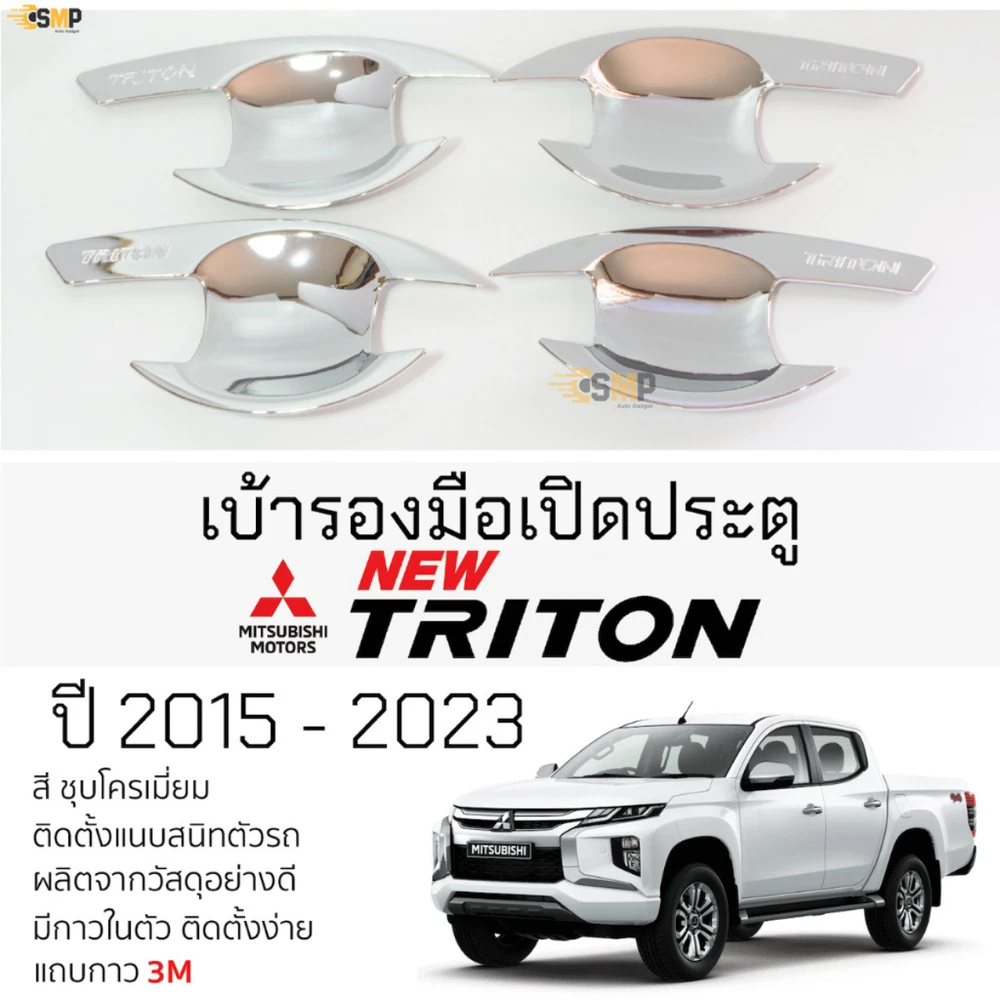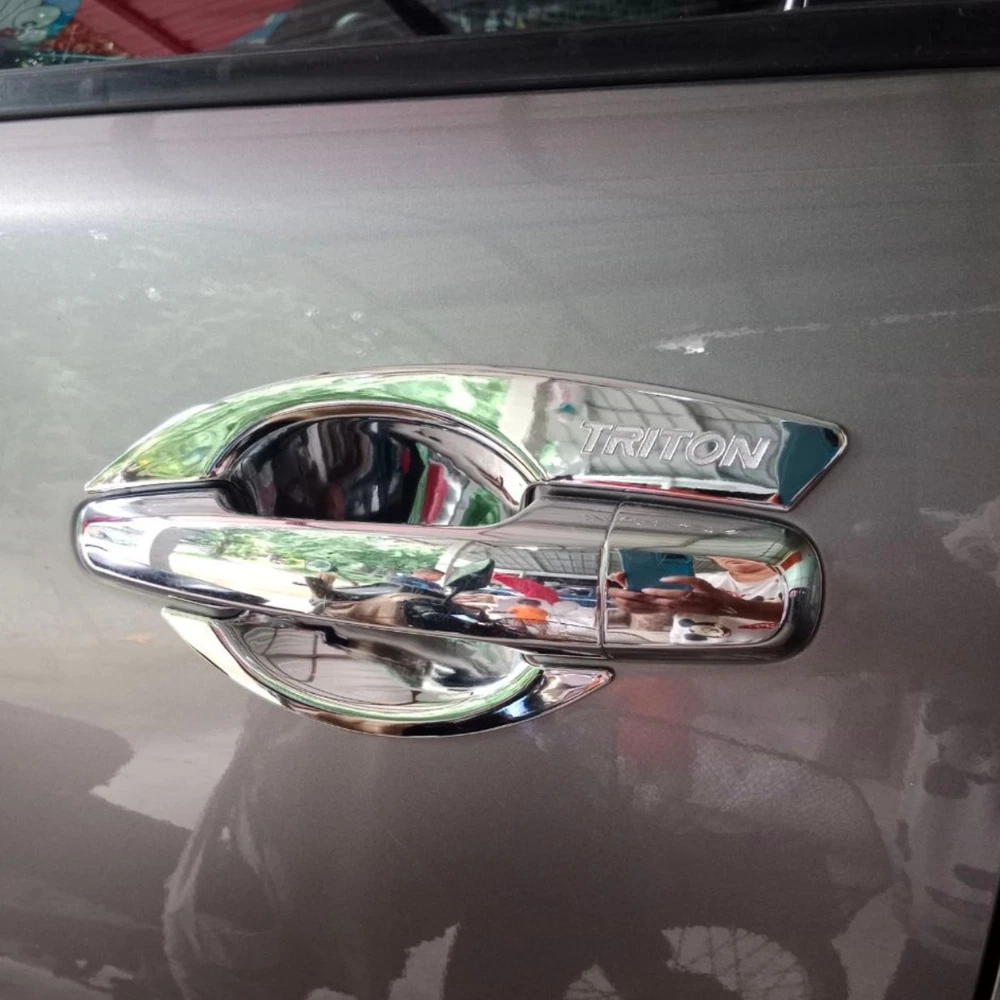 CHROME DOOR HANDLE COVER INSERT BOWL FOR MITSUBISHI TRITON L200 2005-14 ( 1 SET = 4 Pcs. ) Production Introduction : For: + Mitsubishi Triton L200 Pickup MN ML Year 2005-2014 + Made in Thailand + ABS Plastic + Easy Installation + Pre-attached ahesive tape + Chrome Surface Production Description : Name : Door Handle Cover Insert Bowl Trim Condition : New Type : Door Handle Insert Bowl Model Fit : Mitsubishi Triton L200 Pickup Year 2005-2014 (MN, ML) Quantity : 4 pcs Door Handle Cover Insert Bowl Trim To Set How to Use : -