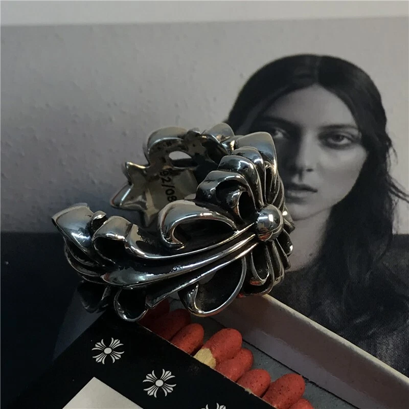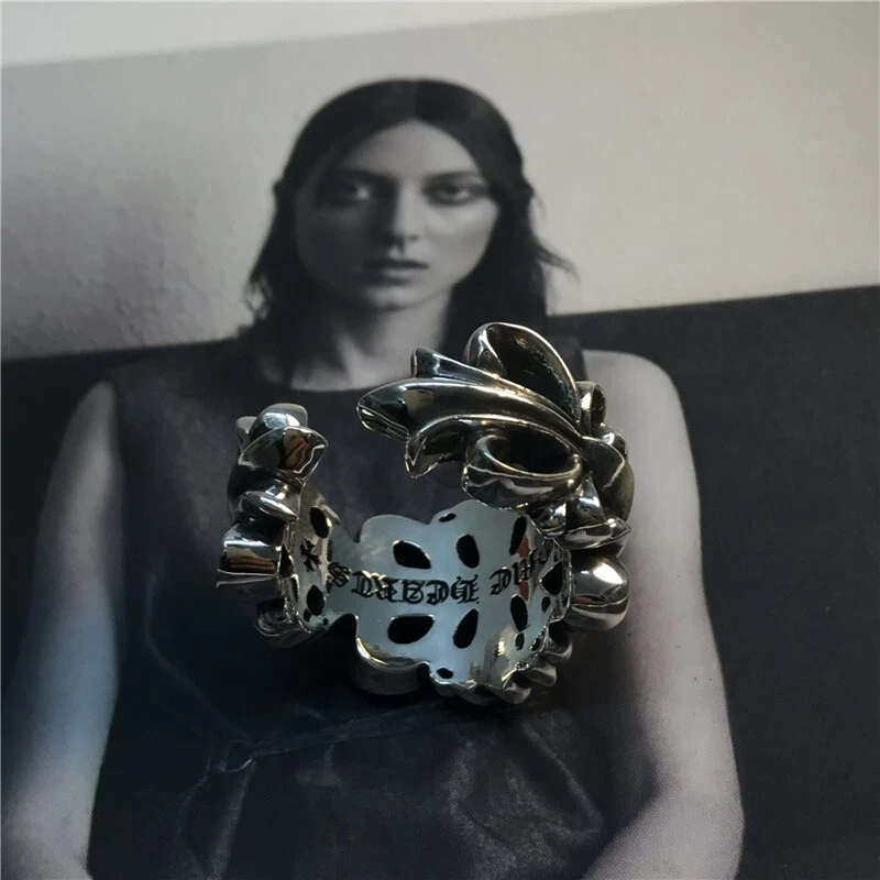 CHROME HEARTS Double Floral Cross Open Back Ring Sterling Silver US 9