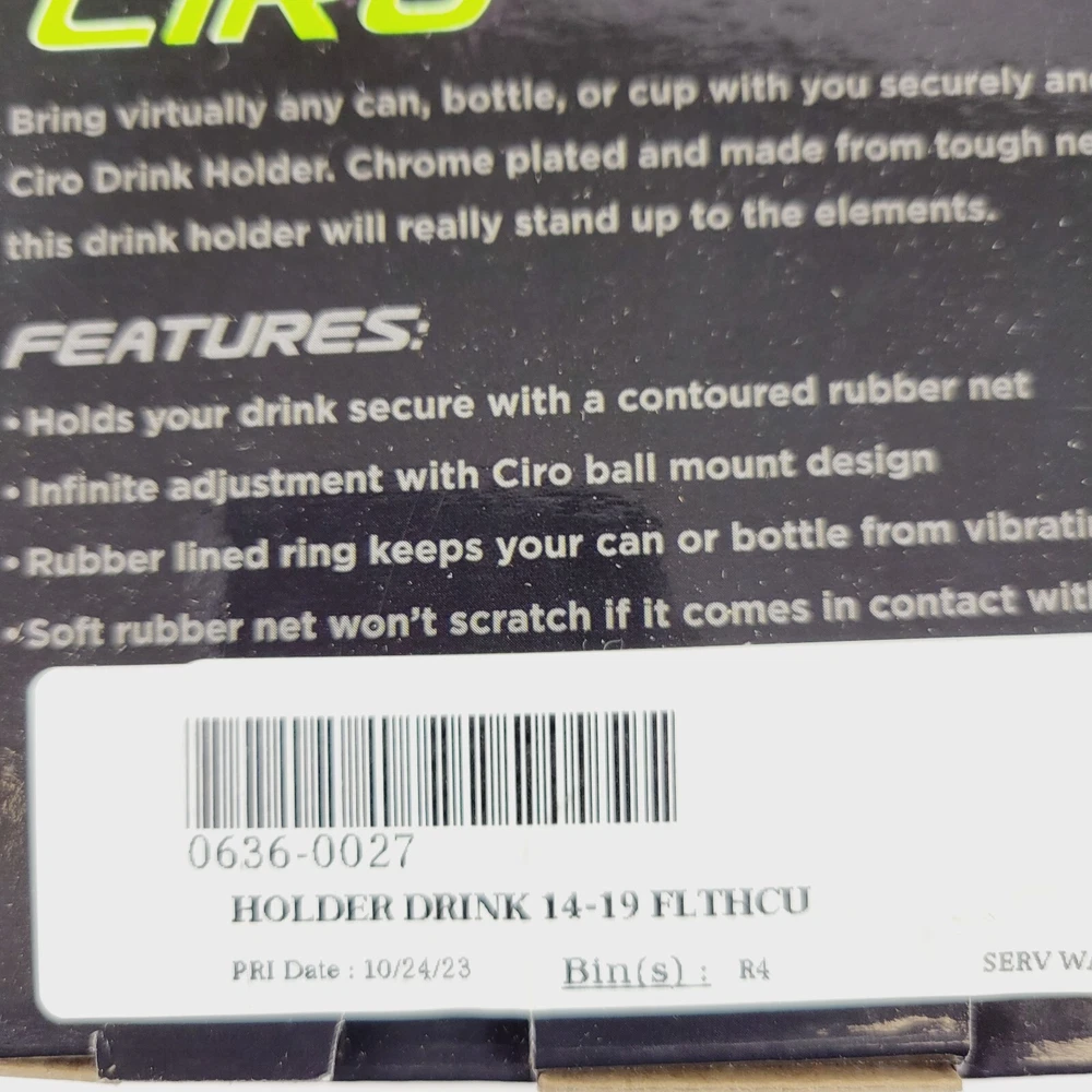Ciro Drink Holder for Harley-Davidson® Product Description: The Ciro Drink Holder is the perfect solution for securely holding virtually any can, bottle, or cup while you're on the road. With its contoured rubber net, this holder provides an adjustable, secure fit for your beverage, and is designed to be easily mounted on your Harley-Davidson®. Key Features: Contoured Rubber Net: Holds cans, bottles, or cups securely while you ride. The rubber net is designed to provide a snug fit without causing any damage to the surface of your items. Infinite Adjustment: The Ciro ball-mount design allows for endless positioning options, ensuring the holder can be mounted wherever you prefer. Vibration Reduction: The rubber-lined ring keeps your beverage from vibrating, ensuring a smooth ride with no spills. Scratch-Proof: The soft rubber net is gentle on your bike's paint and won't cause any scratches if it comes into contact with the surface. Durable Construction: Made from a combination of rubber and aluminum for a sturdy yet lightweight build. Versatile Mounting: Additional mounting options are available (see related products). Specifications: Product Name: Drink Holder Type: Drink Model: Standard Fits Make: Harley-Davidson Color/Finish: Black / Chrome Base Color: Black Finish: Chrome Material: Rubber / Aluminum Mount Style: Ball Mount For Handlebar Diameter: 1" Features: Passenger / With Mount Units: Kit Riding Style: Street Compatibility: This drink holder is compatible with the following Harley-Davidson® models: 2020 Harley-Davidson CVO Electra Glide Ultra Limited FLHTKSE 2020 Harley-Davidson Road Glide Limited FLTRK 2016 Harley-Davidson Road Glide Ultra FLTRU 2015-2016 Harley-Davidson Electra Glide Ultra Classic Low FLHTCUL 2015-2016 Harley-Davidson Electra Glide Ultra Limited Low FLHTKL 2014-2016, 2020 Harley-Davidson Tri Glide Ultra Classic FLHTCUTG 2014-2016, 2020 Harley-Davidson Electra Glide Ultra Limited FLHTK 2014-2016 Harley-Davidson Electra Glide Ultra Classic EFI FLHTCUI The Ciro Drink Holder is a must-have accessory for those who want convenience, style, and functionality all in one. Keep your beverage secure and enjoy the ride!