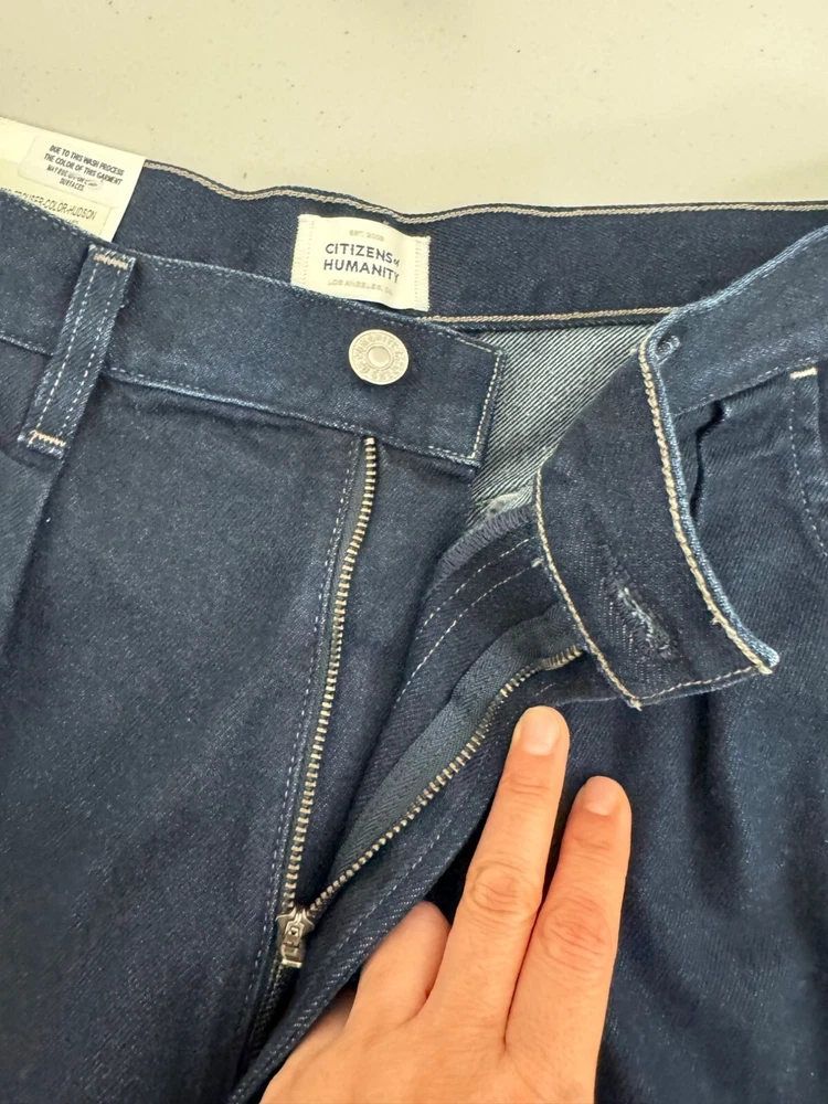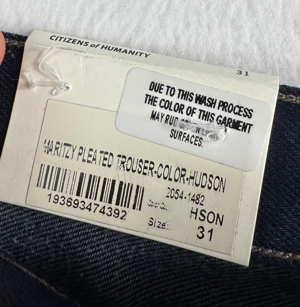New with Tag Retails $300 Citizens of Humanity's 'Maritzy' jeans have a relaxed, wide-leg shape accentuated by sharp pleats at the hips. Cut from organic denim, they're detailed with contrast topstitching and have a high-rise waist. Wear yours with a half-tucked tee and sneakers. Fits true to size, take your normal size High-rise, cut for a wide-leg fit Mid-weight, non-stretchy fabric Flat lay: waist 17" Rise 13.5" Inseam 30.5" Leg Opening 12.3" Material: 69% cotton 31% Poly wide leg, pleated, baggy, loose fit, 90s, relaxed, academia, preppy, minimalist, boho, versatile, comfy, high waist, retro, hipster PLEASE check all flat lay measurements and listings carefully BEFORE PURCHASE!I put in a lot of work into hand measuring and researching each items as best as I can! Thank you so much for your consideration! Please note that: RETURN SHIP FEE IS PAID BY THE BUYER! If you are not too familiar with flat lay measurements, I recommend taking a measurement of your own clothes that you feel comfortable and compare with the measurement I provide. For returns: The items MUST BE IN SAME CONDITION AS SOLD for full refund! We all don't like returns and let's work together to minimize! Please note that RETURNS ARE NOT ACCEPTED FOR NEW WITH TAG OR NEW WITHOUT TAG ITEMS!