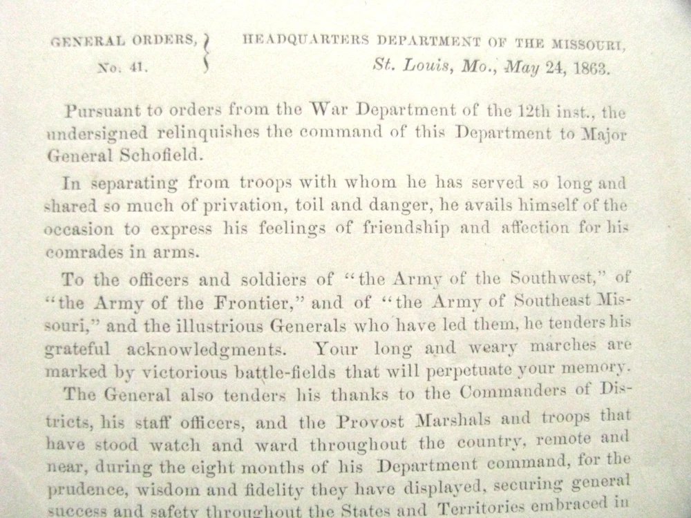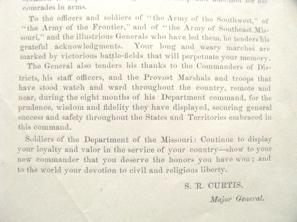 CIVIL WAR MISSOURI GENERAL SAMUEL CURTIS FAREWELL ORDER 1863