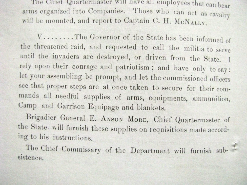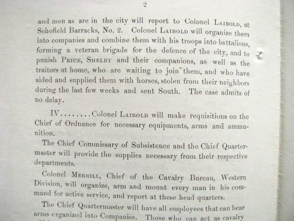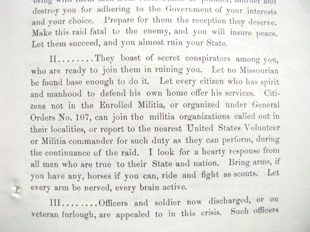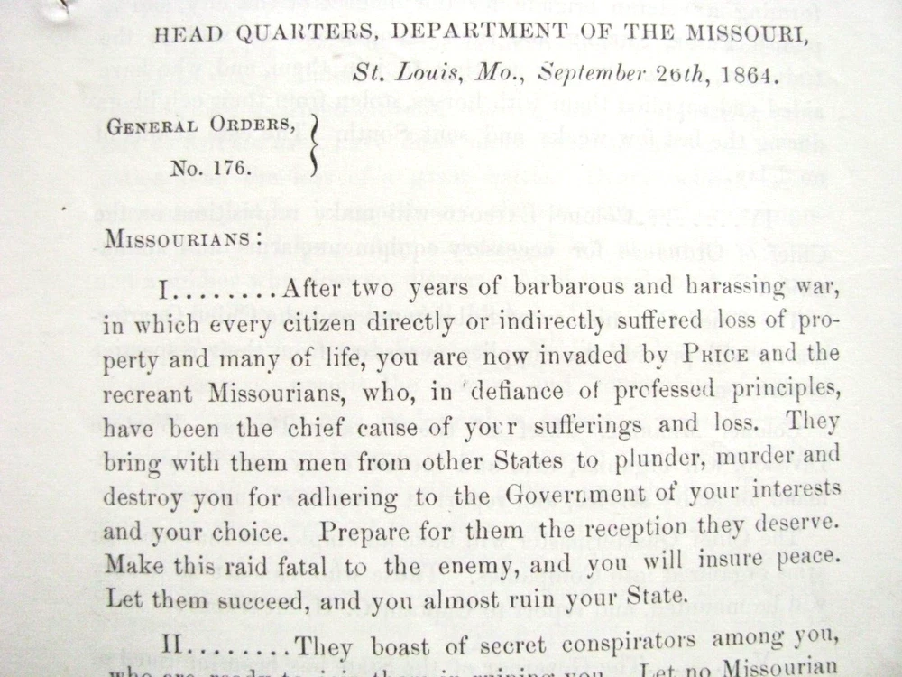 CIVIL WAR MISSOURI STERLING PRICE INVASION UNION CALL TO ARMS ST LOUIS 1864