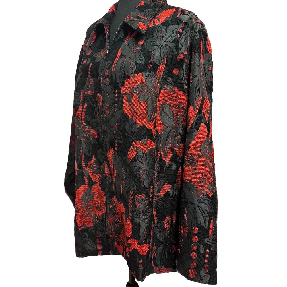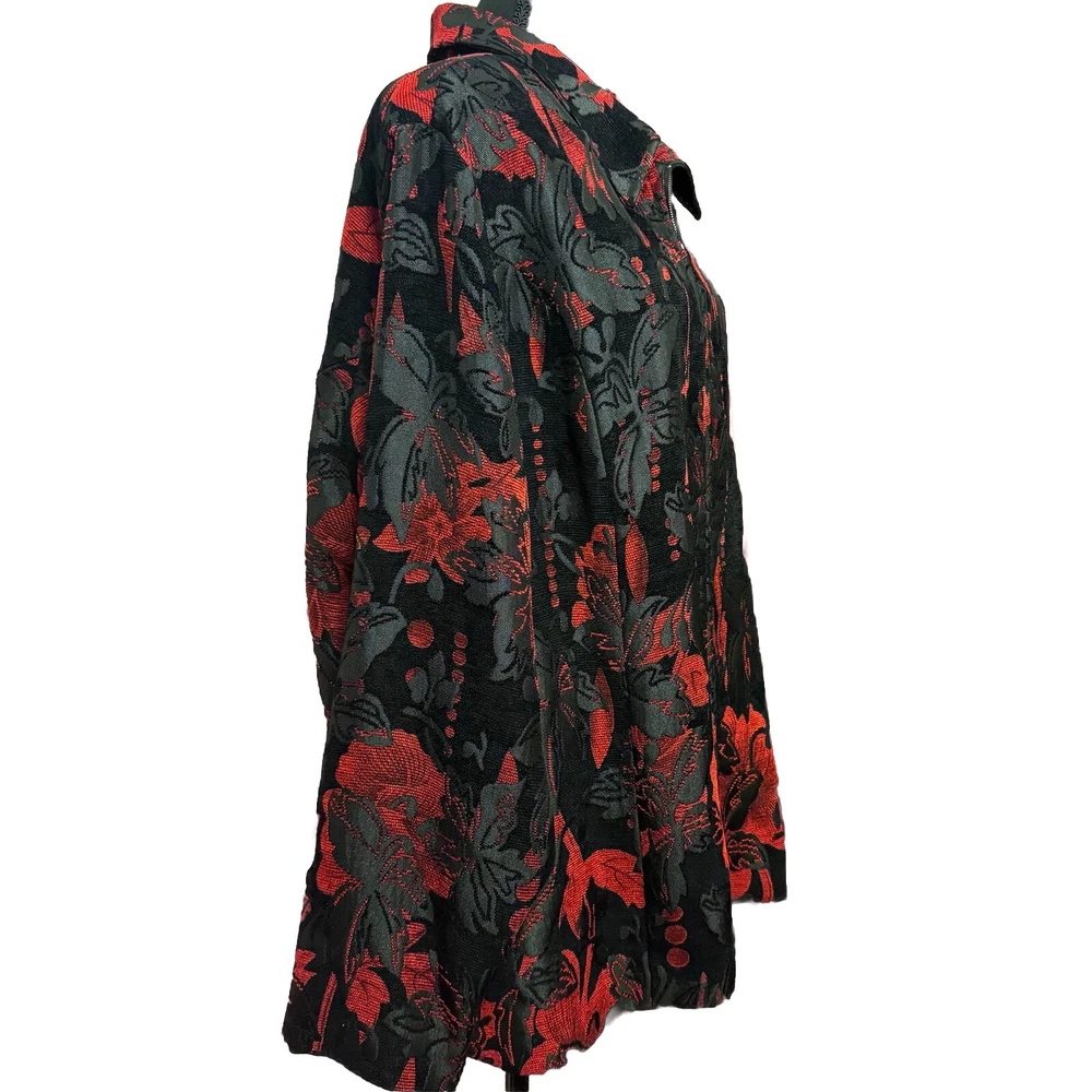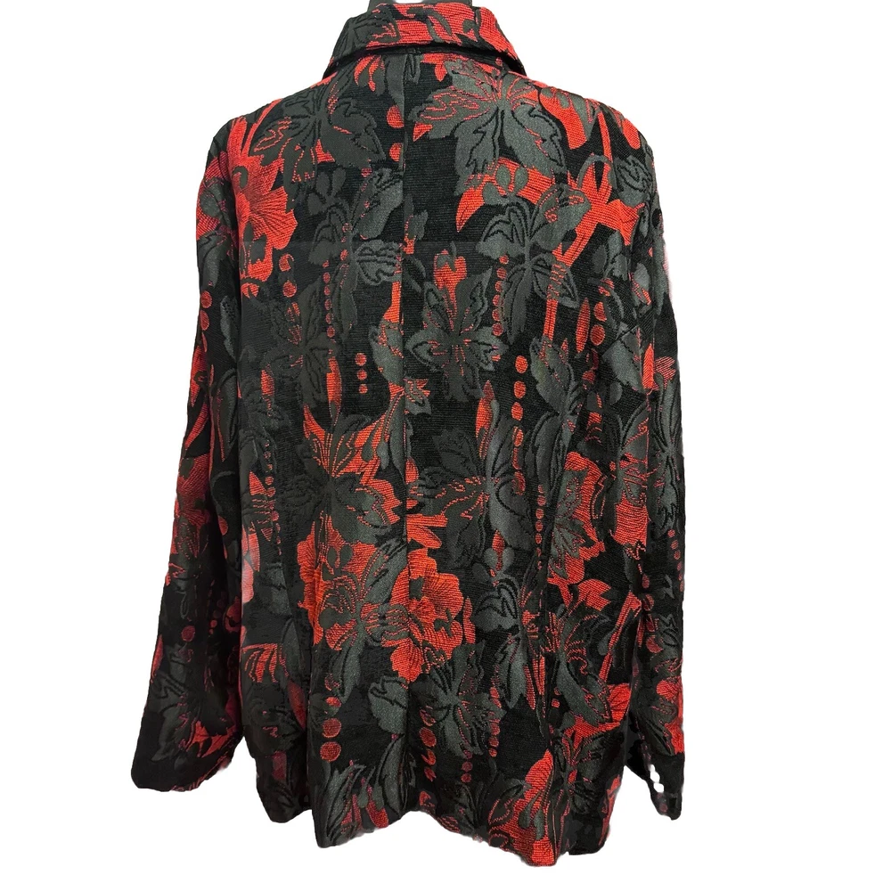 CJ Banks Blazer 2X Womens Tapestry Jacket Red Black Abstract Whimsigoth Office. Condition is Pre-owned. Shipped with USPS Ground Advantage.