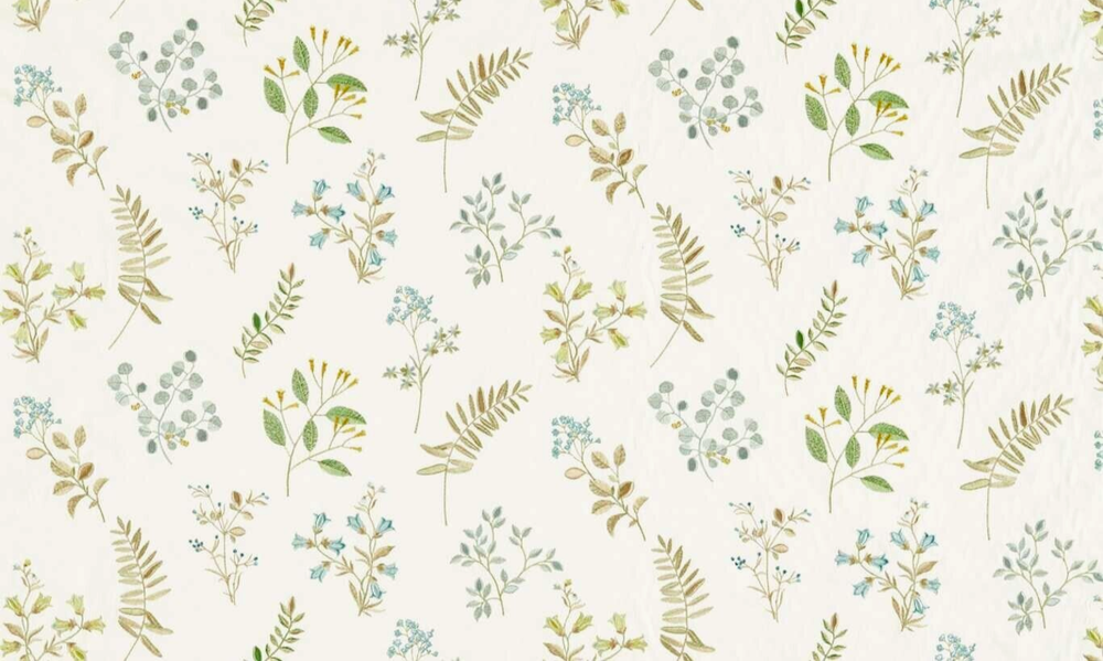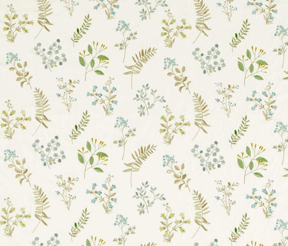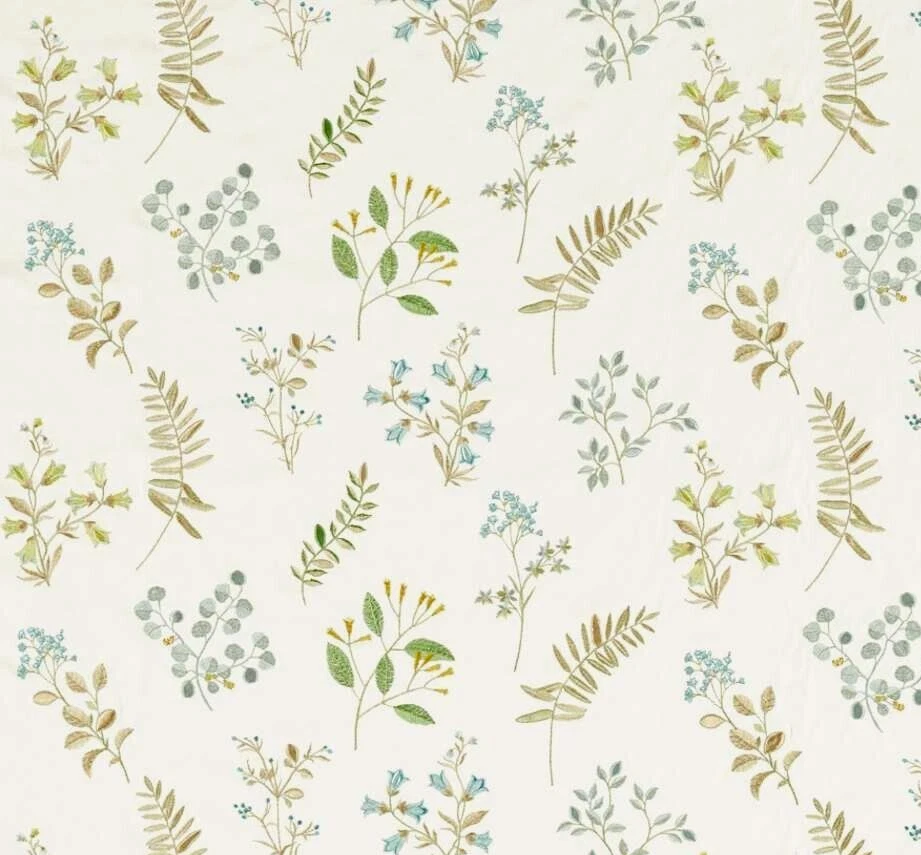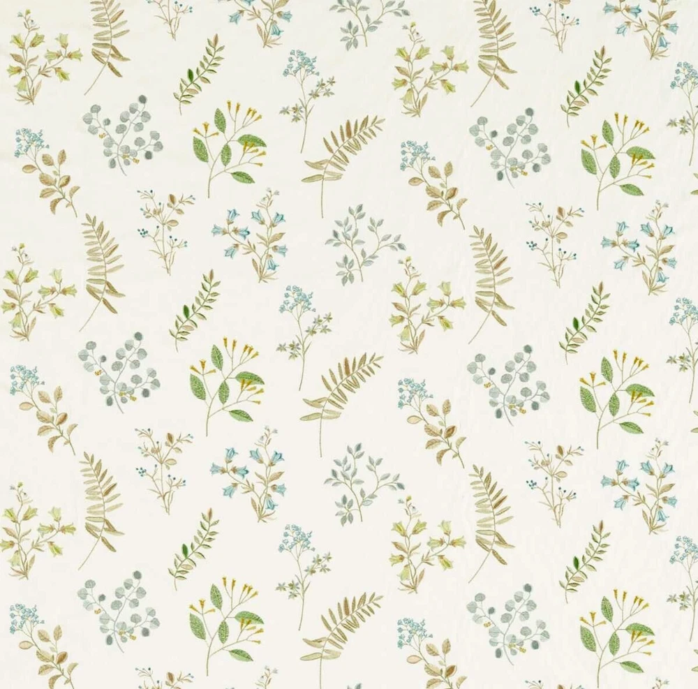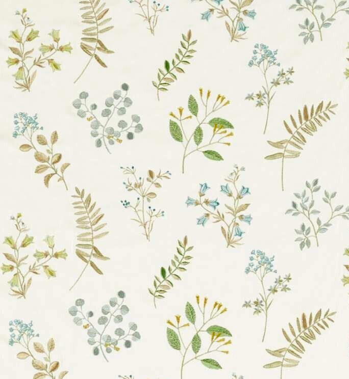 CLARKE AND CLARKE FABRIC FROM THE PAVILLION FABRIC COLLECTION DESIGN IS CALLED BRIGETTE PATTERN REPEAT 39 CM APPLE AND MINERAL COLOURWAY PLEASE NOTE THIS IS AN EMBROIDERED DESIGN YOU ARE BUYING 1 PIECE OF FABRIC APPROXIMATELY 1.9 METRES IN LENGTH 1.29 METRES WIDE. 83% COTTON 13% VISCOSE 4% POLYESTER SUITABLE FOR CURTAINS,BLINDS OR CUSHION COVERS PLEASE NOTE THAT THE MAJORITY OF MY FABRICS WILL COME FOLDED
