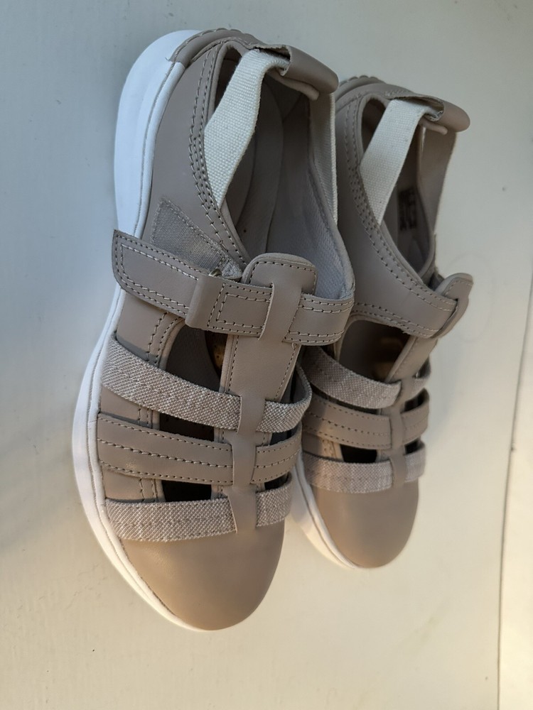These are an excellent like new condition! May have been warm once or twice. Take a look at the pictures, they are awesome! Women’s size 9.5. And they are Tan. The pictures may look a little dark, but they are definitely a tan/khaki color.