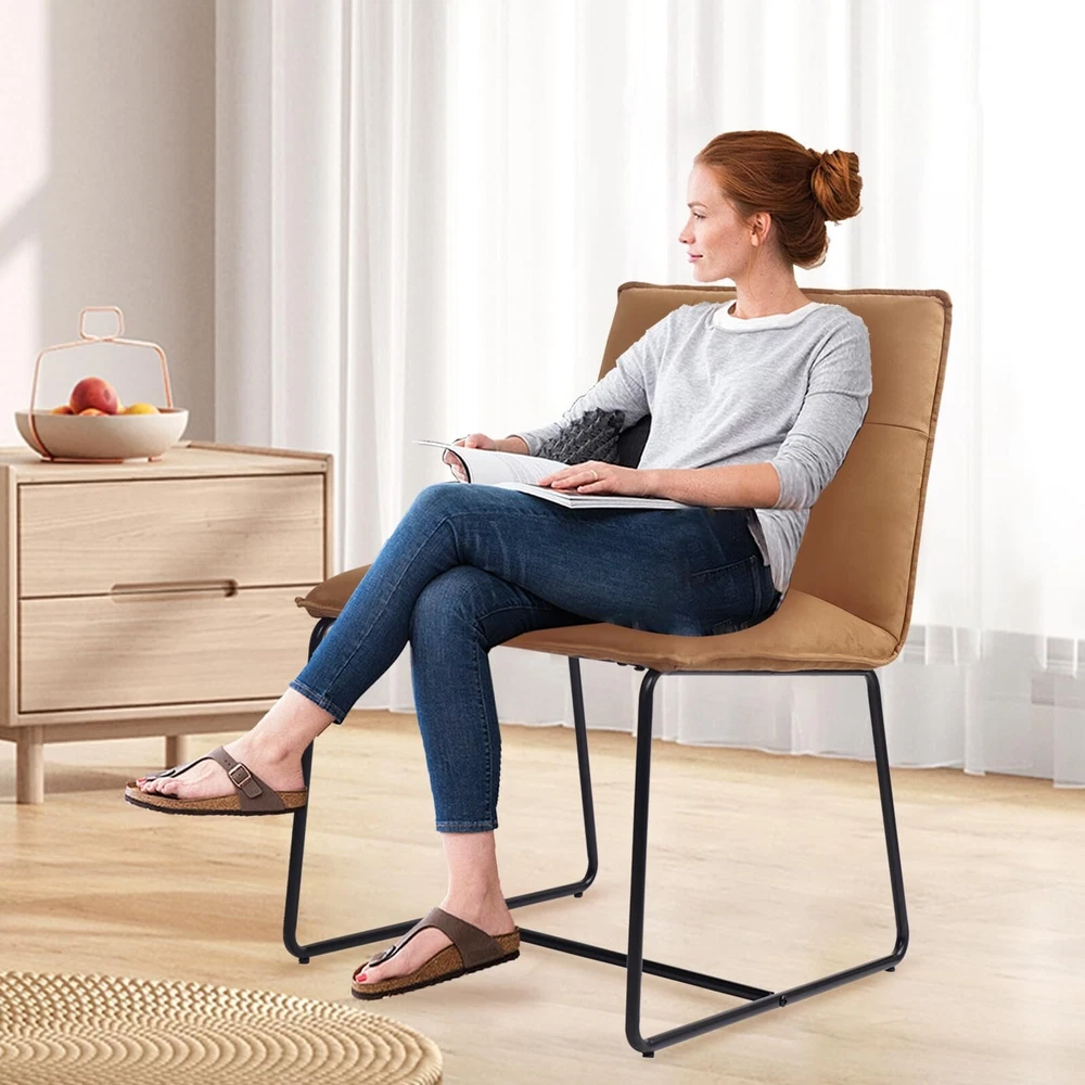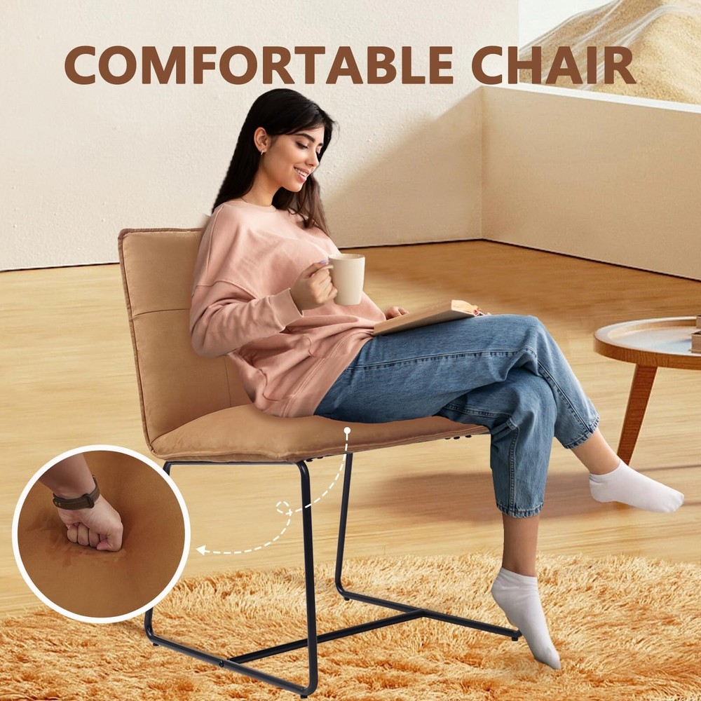 About this item 【CLASSIC DESIGN APPEARANCE】This Vanity chair uses a classic modern medieval style and elegant shape. The decorative chair has given up the handrail to add a relaxed style to the room. From the perspective of functional chairs, this side chair can sit down in almost any direction. 【 SUEDE & HIGHLY ELASTIC SEATER 】 This casual chair uses ultra -soft fabrics and high -elastic sponges. The fabric is soft and comfortable. The living room chair makes it so comfortable to relax and enjoy. You can also give comfy chair as gifts to family or friends. 【STRONG SUPPORT AND DURABILITY】This reading chair uses a metal frame and a luxurious interior design. The bedroom chair can carry 276 pounds. It provides a solid and solid foundation for this brown accent chair to enjoy long -lasting lounge chairs. The cushion of the accent chair armless is very large, you can have enough space to relax and stretch and enjoy completely relaxation. 【MULTIFUNCTIONAL COMFORT CHAIR】Our casual chair is beautiful and suitable for multiple scenes. These modern chairs are very suitable for living room chairs, bedroom chairs, kitchen chairs, dining room chairs, office chairs, university dormitory chairs. 【 EASY INSTALLATION】 The accent chair is installed in a box with a protective device to prevent the product from being damaged during transportation. There is a detailed instruction manual, installation tools and leg screws in the box. It only takes about 10-16 minutes to assemble.