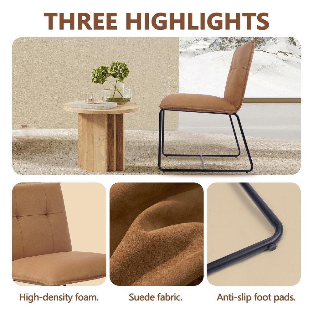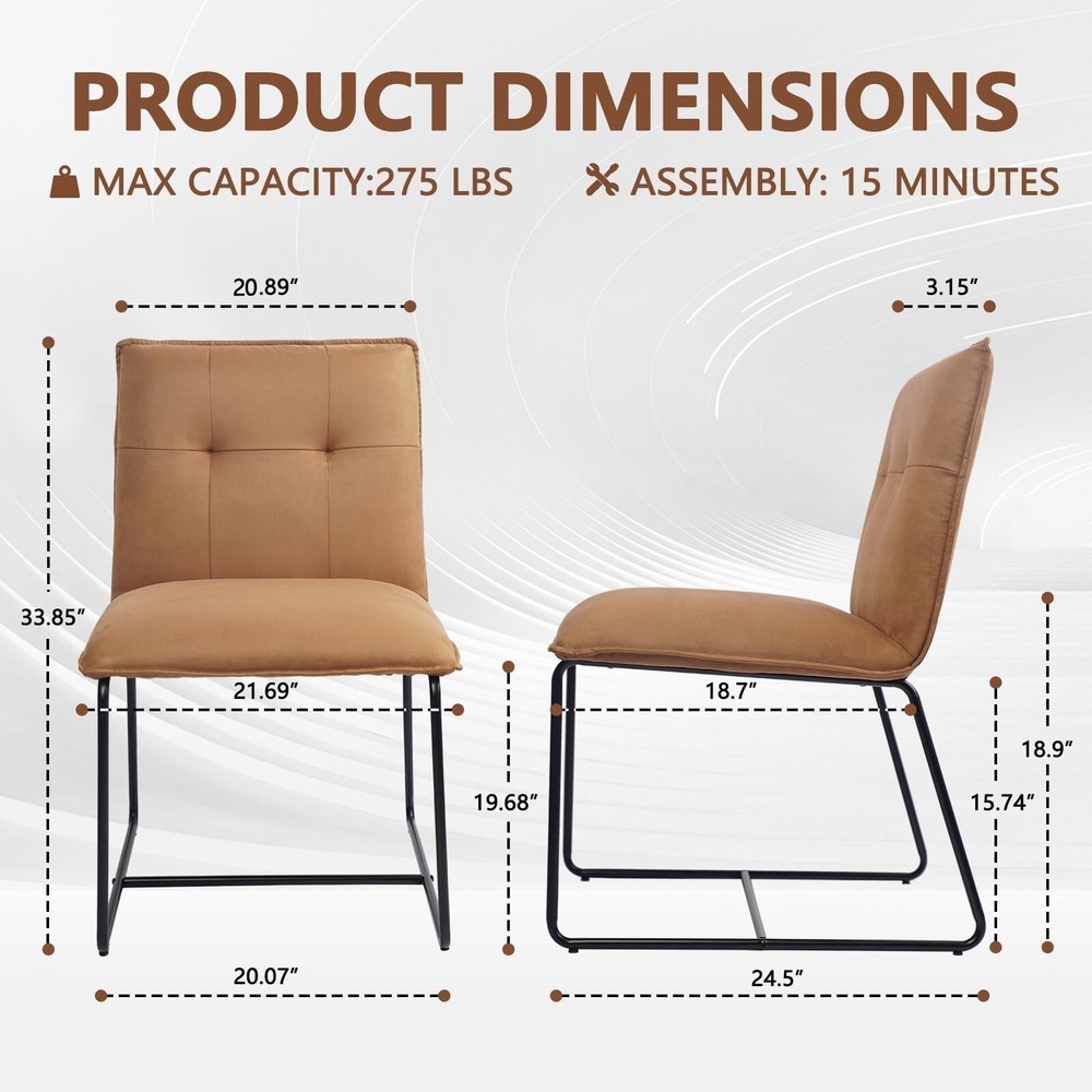 Set Includes: Chair, Cushion Features: Armless, Padded Seat, Upholstered Frame Material: Metal Style: Contemporary/Modern Maximum Weight Capacity: 275 lb Assembly Status: Assembly Required UPC: 6971578219511 Type: Accent Chair Seat Height: 33.85 Item Height: 33.85 Department: Adults Upholstery Fabric: Faux Suede Room: Bedroom, Home Office/Study Item Length: 20.07 gtin13: 6971578219511 Additional Parts Required: No Backrest Height: 18.11 Item Weight: 20.28 Item Width: 24.5 Number of Items in Set: 2 Seat Depth: 18.7 Pattern: Solid Assembly Required: Yes Country/Region of Manufacture: China Indoor/Outdoor: Indoor Manufacturer Warranty: 1 Year Brand: CLATINA Color: Beige Personalized: No