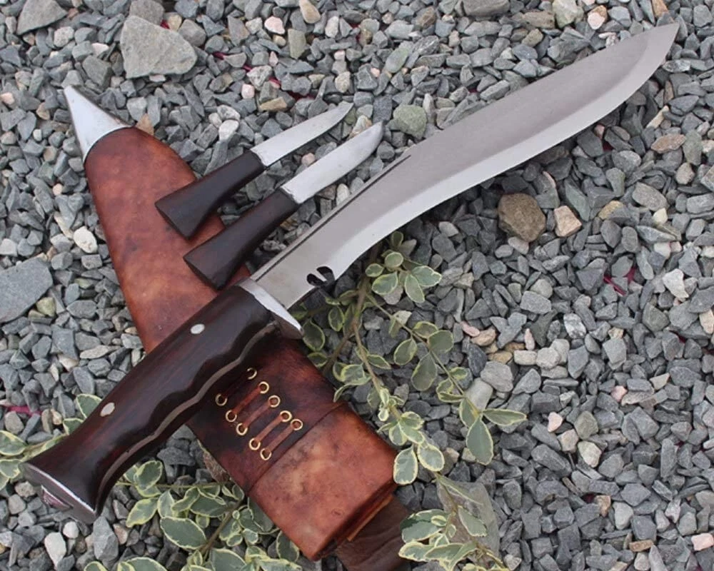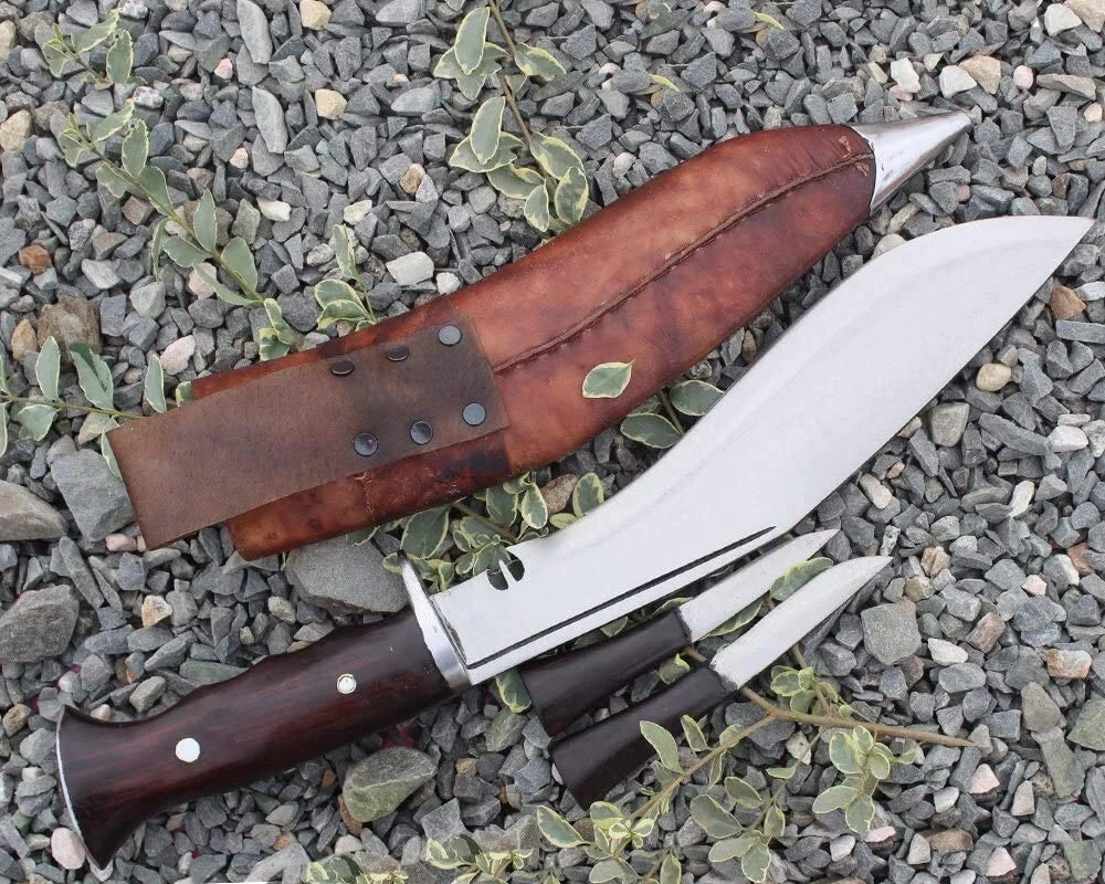 WELCOME TO EX-GURKHA KHUKURI HOUSE Ex-Gurkha Khukuri House is the finest and largest Khukuri /kukri maker/Manufacturer/Retailer in Nepal. Please contact us for wholesale kukri pricing. Dealing in The Genuine Gurkha Kukri directly from the Home Land Of The Gurkhas! CLEARANCE SALE 50% OFF 10.25" Service Full Tang Gripper Handle Khukuri :- It is better to die than to be a coward. Gurkha proverb!! About 10.25" Service Full Tang Gripper Handle Khukuri :- : - 10.25" Blade Service Full Tang Gripper handle Kukri: one of the Nepal Army known as Gorkhas (British Nepales Army has used for World War I ) Standard Issues. -- This is the actual World War I issue Kukri Knife & which is specially developed to carry out different jungle tasks & also fight for Survival. This kukri is heavier than the standard Jungle or PRI issue. It is designed for rough use therefore it is an unpolished finish. The kukri has got lanyard hole on the handle for safety. The scabbard is made of water buffalo leather. The sheath has a belt loop with the frog. The handle and blade are made of the same piece of spring steel. The Blade is tempered by pouring cold water while it is heated as this knife-making process continues. The Balance temper on the edge and blade makes it very strong to cut bones. The handle is made of dark Rosewood. The handle is strongly joined with the blade by two rivets. This knife can be used in Kitchen as well as outdoors for camping or as a survival Knife. Each area of the Kukri is made to execute several functions with ease. ¬¬______The overall length of the Kukri is 15.5 inches with a 10.25" semi-polished blade and a 5.25" full tang handle. A simple and improved sheath with a belt loop is made of processed dark brown leather. It Weighs about 1.75 lb or (775 grams) with sheath. The craftsmanship on this knife is amazing so if you are looking for the finest quality working kitchen or bone chopping knife you will not be disappointed. Where this Kukri is Made? The origin of the Kukri is in Nepal. Dharan is a small Gurkha town that is located in eastern Nepal. Dharan is a very famous and important place for Gurkha recruiting. We have our own factory in Dharan, there are over 200 blacksmiths (metal smith,kamis). And all the Kukri they made by hand. Specification of 10.25" Service Full Tang Gripper Handle Khukuri : This is a handcrafted kukri therefore please note that each one might have slight variations in measurement * Blade Size and Type: 10.25 inches (26 cm), Hand Forged Unpolished Blade. * Handle: 5.5 inch (14cm) full tang rosewood Gripper Handle. * Material Used: Highly Graded Carbon Steel 5160, water Buffalo Leather for Scabbard(outside) and rosewood for the Handle, Pinewood for the Scabbard (inside), Brass, and "Laha" ( Nepali Traditional Glue) . * Weight: 700gms (25 Oz Approx) only khukuri blade weight. * Overall length: 16 inches from tip to pommel (Approx). * Steel Hardness : spine=22-25 RC, belly=45-46 RC, edge=58-60 R * Karda & Chakmak: These are small knives that come with Kukri. Karda is a small knife used for skinning animal hairs. And Chakmak is used of sharpening the Kukri blade in its blunt. When you bid or buy this In order you will also get these two unique knives. Please Note: We listed The Kukri Stock clearance 50% OFF Sale price so we will not accept returns or exchanges for this product, The kukri is brand new very good condition, Scabbard, and two small Utility Knives are included in the Sale price. Problems........??? please, before leaving negative feedback, contact us and allows us to try to correct the problem. If you have any queries please don't hesitate to contact us . Strictly for Over 18?s Only We may request a copy of your ID to verify your age before we ship the item EGKH since 1999 in Nepal Genuine Gurkha Kukri Knives From the Homeland Of Gurkha In Nepal. Buy with Confident, the Quality & Authenticity are 100% Guaranteed THANK YOU VERY MUCH FOR VISITING