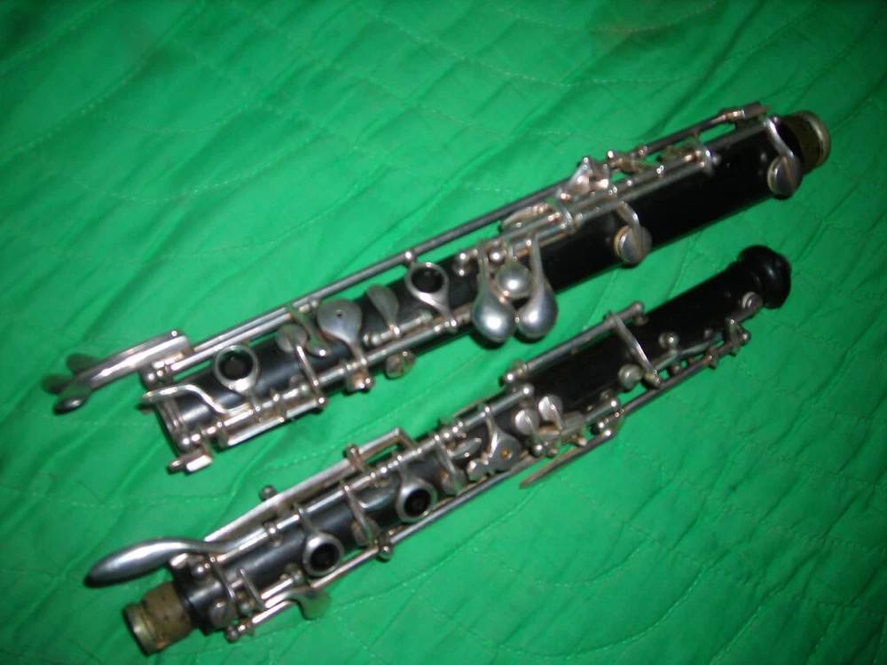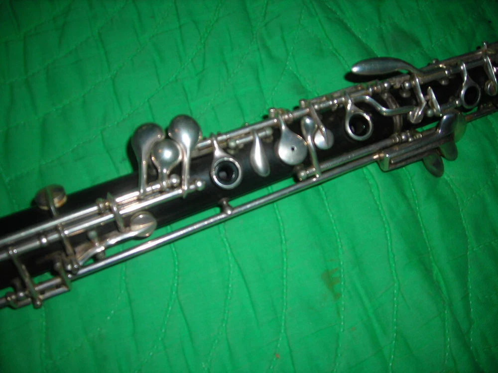 PLEASE READ EVERYTHING I DON'T KNOW A LOT ABOUT OBOE'S BUT DO MY BEST TO DESCRIBE AND PHOTOGRAPH THEM. THIS IS A VINTAGE 1960'S OR SO CONN WOOD OBOE. SERIAL NUMBER C280302L. IT IS AN ADVANCED BEGINNER TO INTERMEDIATE LEVEL OBOE AND HAS A SIMPLIFIED CONSERVATORY SYSTEM. THE GOLD SEAL HAS 3 MARCHING MEN AND SAYS CHOICE OF THE ARTISTS.IT IS IN GOOD CONDITION. ALL GRENADILLA WOOD. SILVER KEYS LOOK OK. PADS SEEM TO BE OK. THE CORKS NEED TO BE REPLACED. IT PROBABLY NEEDS SOME ADJUSTMENT OR TWEAKING AS IT HAS BEEN SITTING A WHILE. IT DOES PLAY. DO PLEASE REMEMBER IT IS A 60 YEAR OLD USED OBOE. S/H/I IS $25 EMAIL ME WITH ANY QUESTIONS THANKS