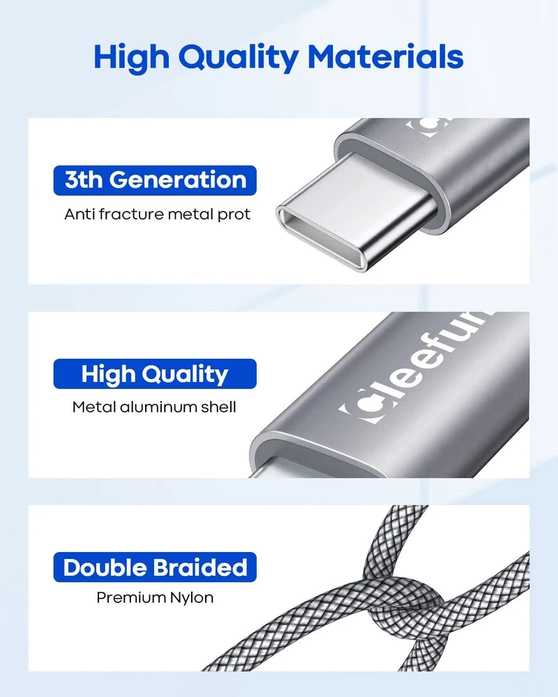 CLEEFUN USB C Cable [6ft, 5-Pack], USB A to Type C Cable Fast Charging C Charger Cord Braided for iPhone 15 Pro Max/Pro/Plus, for Samsung Galaxy S24 S23 S22 S21 S20 Ultra S10, Moto, Pixel 【5-Pack 6 FT USB C Cable】5 Pack 6 feet USB-C Charger Cable meets all your demands in daily life and makes your life more convenient. Keep a cable in your bag, car, home and office as a backup. 【Enhanced 15X Durability】Premium nylon-braided jacket and aluminum housing adds USB to USB C Cable additional durability can withstand 20,000+ bend test and daily wear and tear. 【BUILT TO LAST】Heavy duty nylon-braided jacket with premium flexible make it easy to sort out 【QC4.0/3.0 Fast Charge】CLEEFUN USB A to USB C cable support QC 4.0/3.0 3A max Fast Charging (faster compared with other cables which provide 5V/2.4A output). 【Transfer Files in Seconds】5 pack USB C 2.0 Cables data transfer speed up to 480Mbps, pictures and files can be transferred in a few minutes. 【Sturdy & Reliable】Manufactured USB Type-C specification version 1.1, standard 56kilohom and 22awg core identification resistance 【Universal Compatibility】CLEEFUN USB A to USB C Cable is compatible with Galaxy S22/ S22+/ S21/ S21+/ S20/ S20+ Ultra 5G/ S20fe/ S21fe/ S10e/ S10/ S10 Plus/ S10 Lite/ S9/ S9 Plus/ S8/ S8 Plus, Note10/ Note10+/ Note9/ Note8, A10e/ A20/ A20e/ A30/ A40/ A50/ A51/ A70/ A71/ A80/ A90/ A8/ A9/ A5 2017. 【Universal Compatibility】CLEEFUN Type C Cable is compatible with LGV50/ V40/ V30/ V20/ G8/ G7/ G6/ K51/ Stylo4/ Stylo5/ Stylo6, Xperia 10/ 10 II/ L3/ L4/ XZ3/ XA2 / XA1 / XZ1, MotoG8/ G8 plus/ G8 Power/ G8 Power Lite/ G7/ G7 power/ G7 play/ G7 plus/ G6/ G6 plus and more usb type c cable devices. 【5-Pack 6 FT USB C Cable】5 Pack 6 feet USB-C Charger Cable meets all your demands in daily life and makes your life more convenient. Keep a cable in your bag, car, home and office as a backup. 【Enhanced 15X Durability】Premium nylon-braided jacket and aluminum housing adds USB to USB C Cable additional durability can withstand 20,000+ bend test and daily wear and tear. 【BUILT TO LAST】Heavy duty nylon-braided jacket with premium flexible make it easy to sort out 【QC4.0/3.0 Fast Charge】CLEEFUN USB A to USB C cable support QC 4.0/3.0 3A max Fast Charging (faster compared with other cables which provide 5V/2.4A output). 【Transfer Files in Seconds】5 pack USB C 2.0 Cables data transfer speed up to 480Mbps, pictures and files can be transferred in a few minutes. 【Sturdy & Reliable】Manufactured USB Type-C specification version 1.1, standard 56kilohom and 22awg core identification resistance 【Universal Compatibility】CLEEFUN USB A to USB C Cable is compatible with Galaxy S22/ S22+/ S21/ S21+/ S20/ S20+ Ultra 5G/ S20fe/ S21fe/ S10e/ S10/ S10 Plus/ S10 Lite/ S9/ S9 Plus/ S8/ S8 Plus, Note10/ Note10+/ Note9/ Note8, A10e/ A20/ A20e/ A30/ A40/ A50/ A51/ A70/ A71/ A80/ A90/ A8/ A9/ A5 2017. 【Universal Compatibility】CLEEFUN Type C Cable is compatible with LGV50/ V40/ V30/ V20/ G8/ G7/ G6/ K51/ Stylo4/ Stylo5/ Stylo6, Xperia 10/ 10 II/ L3/ L4/ XZ3/ XA2 / XA1 / XZ1, MotoG8/ G8 plus/ G8 Power/ G8 Power Lite/ G7/ G7 power/ G7 play/ G7 plus/ G6/ G6 plus and more usb type c cable devices. Shipping from the USA All of our products are shipped from the USA, ensuring quick delivery to your destination. Payment We offer the following payment methods: PayPal, credit card, bank transfer, and eBay's secure payment system. Free Shipping & Free Returns Shipping within the USA is FREE. Additionally, any return is absolutely free for you. Risk-Free Purchase You have the option to return an item within 30 days without any justification. We cover the return shipping costs! Fast Shipping We ship immediately upon receipt of payment. Generally, the package is delivered within 2-3 days in the USA. If it takes longer, we will contact you. Quality and Costs Made in Europe, USA, China No customs fees or additional charges Total satisfaction guarantee Invoice with declared VAT available upon request in .pdf format Feedback Your feedback is very important to us. After you pay for your purchase, you will automatically receive positive feedback from us.