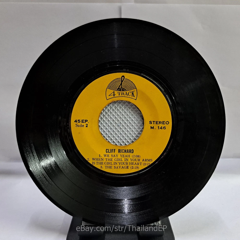 Welcome to The World of ""Thailand Vinyl Records"".Very rare and beutiful picture of cover. Check everyday . This item is for a true 7" single collector. It was printed and sold locally as limited EP back in the early 70's. Only few copies were spread outside Thailand. Most professional record collectors know that it is scarce nowadays and is absolutely a collector's item. If you know a UK magazine called RECORD COLLECTOR then you must have read many articles mentioning THAILAND EP and this is it !!! Here is your chance to own one-of-a-kind piece of Asian's 7" single history. Description Records !!! DETAIL SONG and ARTIST !!! Side A: A1 = Cliff Richard - The Young Ones / A2 = Cliff Richard - Lessons In Love Side B: B1 = Cliff Richard - We Say Yeah / B2 = Cliff Richard - When The Girl In Your Arms Is The Girl In Your Heart Label&Catalogue number : : M146 Country of release : THAILAND Condition (Sleeve/Disc) : VG / VG+ and pls see picture too. Shipping I am seller in Thailand not USA.So I can not ship 4$ as policy pls understand this real rate from oversea . Price for shipping(Airmail )&Packaging to worldwide only US 14.99 USD .Except Asia and JAPAN only 14.99 USD. You can save cost for combine shipping only 3 USD$ per each. 2xEP=17.99 USD$ , 3xEP=20.99 USD$ . My package very safety by big cardboard don't worry about your's EP/PS/LP. Time delivered 21-45 days . ***All item : have tracking system no need add money*** **For normal shipping (Airmail).Time delivery to ITALY maybe use 1-2 Months, France use 1-2 Months.But Don't worry item will arrived to you sure!!.For fastest and High value you can use Express Mail Service cost for1 EP =39 USD.EP will arrived to you within 5-7 Days. ***All shipment have fully tracking system *** Payment PAYMENT : I accept the follow payment by eBay managed , . My ID eBay provide by eBay .Account will be provide at the end auction.Charges to be covered by winner. If you have question pls email to me anytime i can answer immediatly. I have many EP,PS 7" Thailand Pls Click => View seller's other items Check my feedback , I care and honest all customer.I welcome 0 feedback but contact me first if you will bidding. Good Luck !!!! and Enjoy . 45 RPM / EP/ LP Grading Scale: Mint /NM/ Excellent(VG++) /VG+/ VG /G+ /Good(G) / Fair / Poor / Bad (According Record Collector Magazine (UK)) LOT150-33M146