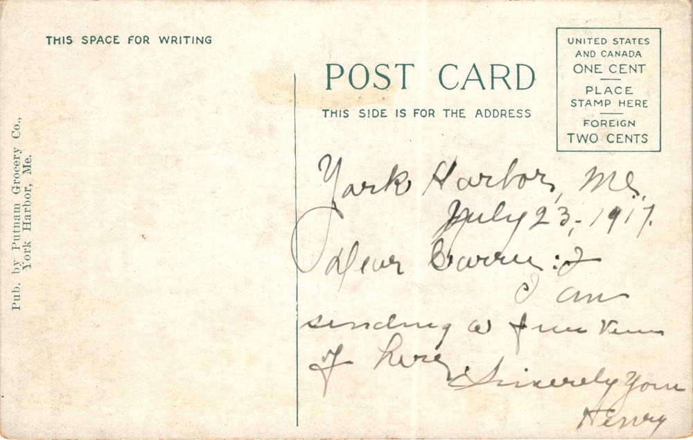 MAKE AN OFFER. THE MORE YOU BUY THE BETTER DEAL I WILL ACCEPT The front of the postcard depicts a scene along the Cliff Walk in York Harbor, Maine, published by Putnam Grocery Co. The back of the postcard has a space for writing a message and the address.