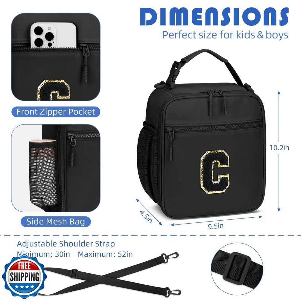 CLOUDWINGS Initial Insulated Lunch Bag for Boys Kids, Back to School Gift, Reusable Leak-proof Lunch Box with Adjustable Strap for School Daycare Travel Picnic(Black,C) Features Personalized Letter Patch Design:The reusable lunch box for girls features a prominent initial, presenting a trendy and simple design. Crafted for lasting durability and a soft-touch finish. Perfect for kids, teens, and adults seeking a unique style statement 3 Ways to Carry:Hand-carry using the top handle, wear as a shoulder bag/crossbody with the adjustable strap, or attach to kids' backpacks via the detachable buckle handle Insulated & Easy-Clean:Triple-layer insulation (360d oxford fabric+Pearl cotton+PEVA lining) keeps meals cold/warm for 6+ hours. The waterproof, leak-proof lining wipes clean instantly—no lingering stains from spills or sauces. Built to last and easy to maintain Lightweight & Spacious:At just 0.44lbs, this 10.2"x9.2"x4.5" bag fits lunches, snacks, fruits, drinks, plus keys, phones, and small essentials. Ideal for school, office, picnics, travel, or beach days Ideal Gift:The stylish personalized monogrammed lunch bag is great as a birthday, Thanksgiving, New Year, Back to school day and Christmas gift for teen, friends, daughters, son, granddaughter,sisters and so on Shipping Free & Fast Shipping: We offer free shipping to most of the USA with a normal delivery time of 3-7 days. However, due to the current situation, additional delivery time (up to 3 weeks) may be required for some items. Alternative Carriers: We may use alternative carriers (e.g., USPS, FedEx, UPS) to ensure your package arrives safely and on time. Due to the use of multiple carriers, we are unable to provide a tracking number automatically. Handling Time: Orders are processed and shipped within 1-2 business days of receiving cleared payment. Shipping Restrictions: Shipping to Alaska, Hawaii, Puerto Rico, Guam, and other US territories may incur shipping charges or delivery restrictions. Please contact us before ordering, or your order can be refunded/cancelled. State Restrictions: Certain items may not be shipped to California due to state regulations. Contact for Tracking Updates: If you require tracking updates or have any concerns about the delivery of your order, please feel free to contact us, and we will be happy to assist you. Return Policy 30-Day Hassle-Free Returns: If you are not completely satisfied with your purchase, you can return the item for free within 30 days of receiving it for a full refund or exchange. Easy Return Process: Contact us, and we will provide you with a prepaid return shipping label and detailed instructions. No Restocking Fee: There are no restocking fees for returns. However, the buyer is responsible for return shipping costs if the return is not due to a seller"s error. Refund Processing: Refunds will be processed within 1 business day of receiving the returned item in its original condition. Feedback Your feedback is extremely important to us. We strive to provide the best products and customer service possible. If you are satisfied with your purchase, please take a moment to leave us a positive review. If you have any concerns or issues with your order, please contact us before leaving negative feedback. We are committed to resolving any problems and ensuring your satisfaction. Contact Us If you have any questions or concerns, please feel free to reach out to our customer support team. You can contact us through the eBay messaging system. We are available Monday to Friday, 9:00 am to 5:00 pm EST, and we will do our best to respond to your inquiry within 24 hours. Thank you for supporting our small family business!