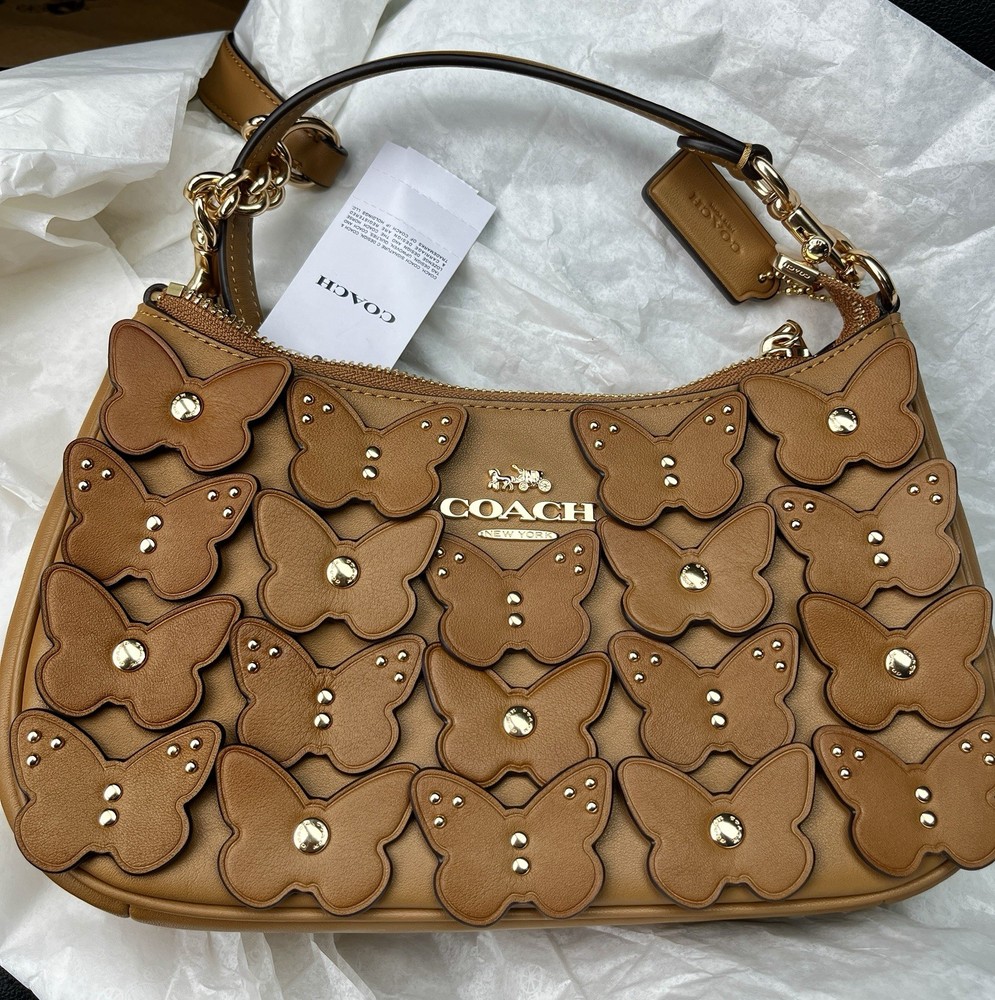 COACH CAJ97 Teri Shoulder Bag Butterfly Applique BOHO Leather Brown Purse