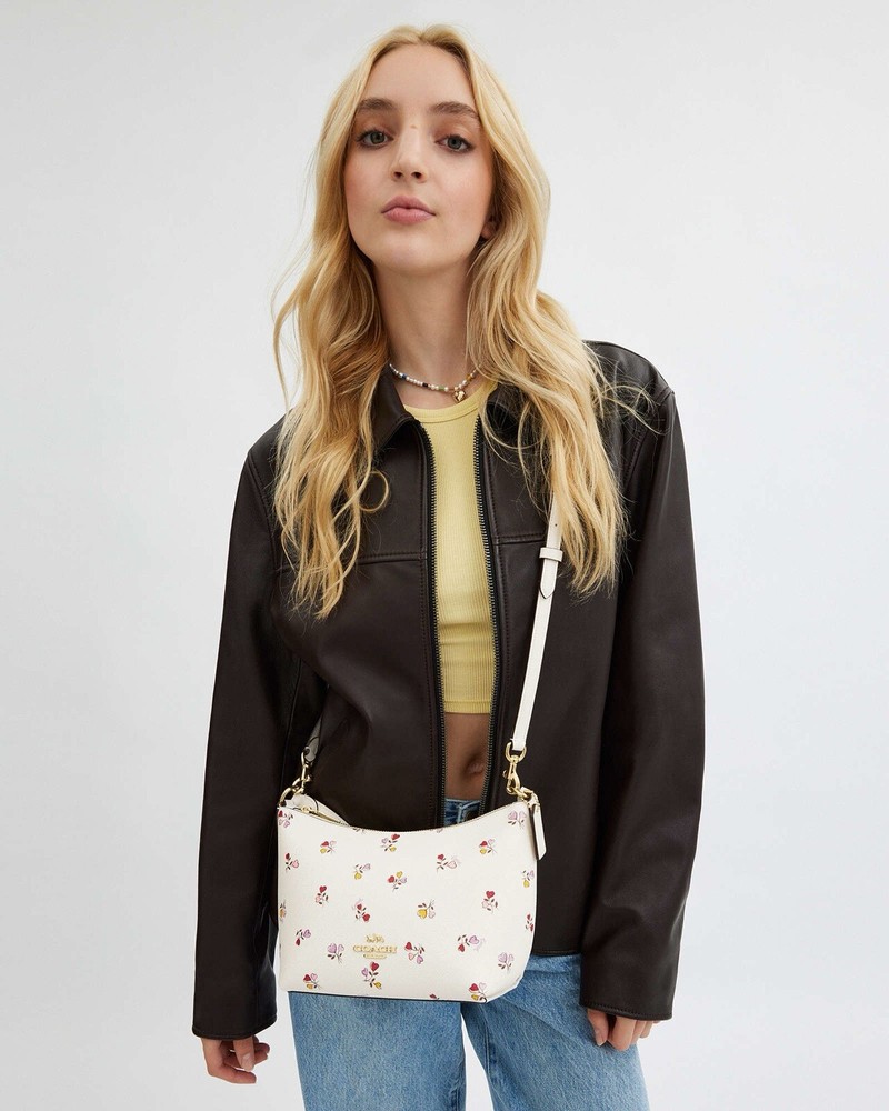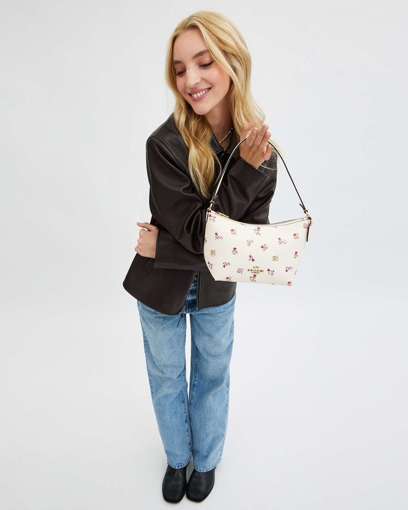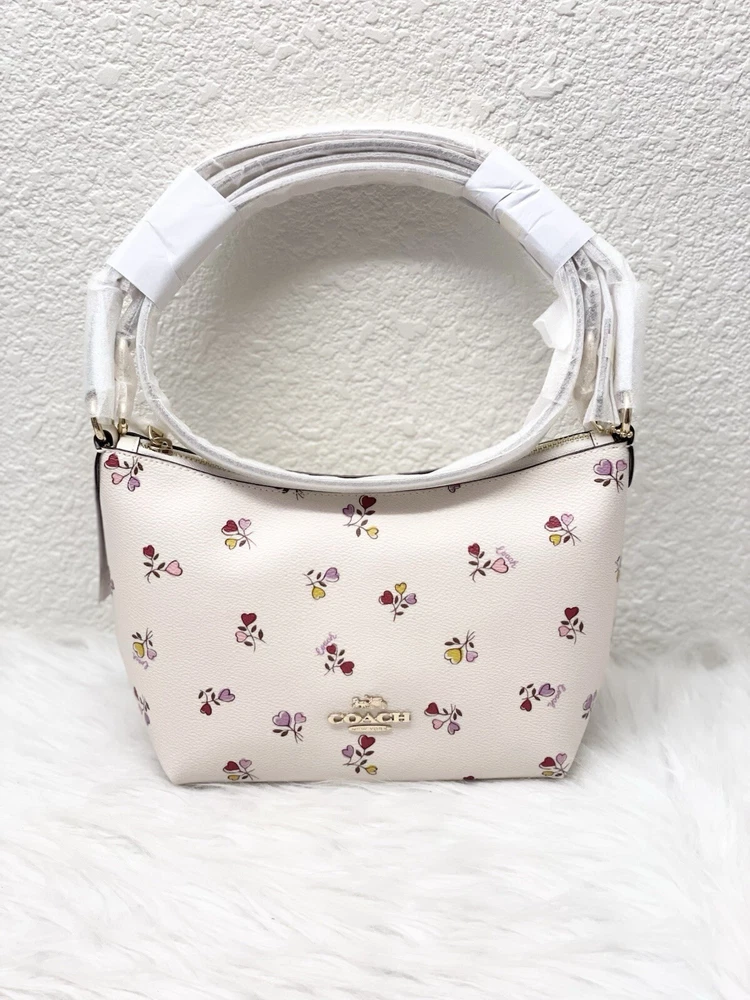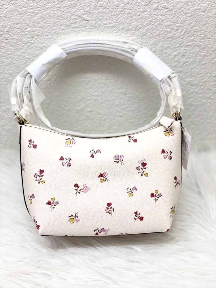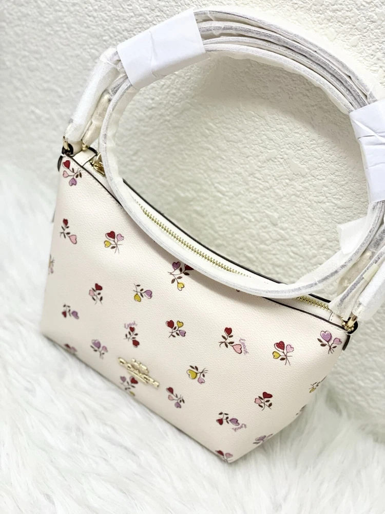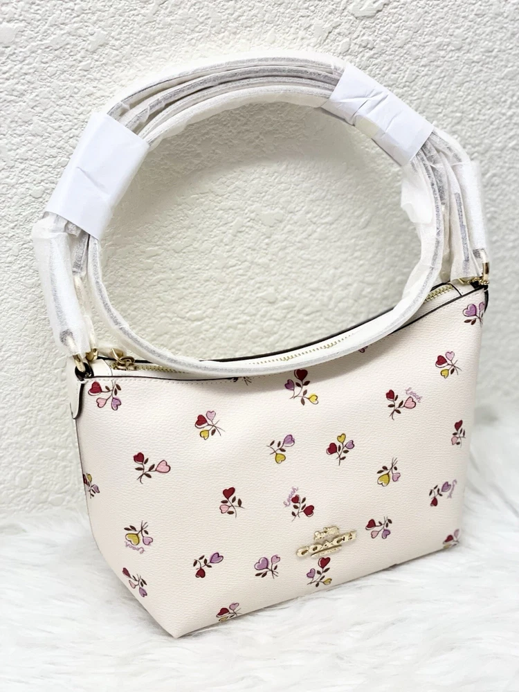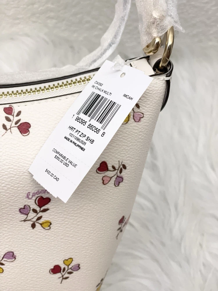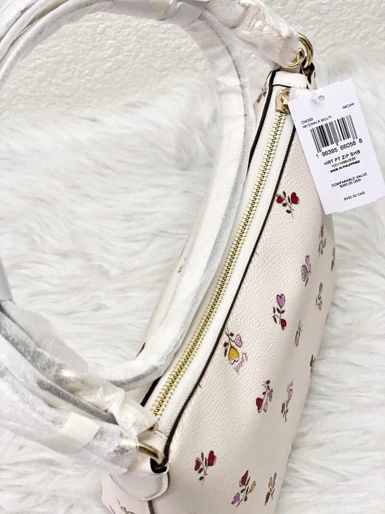 Coach Zip Top Shoulder Bag With Heart Print Come with original packaging