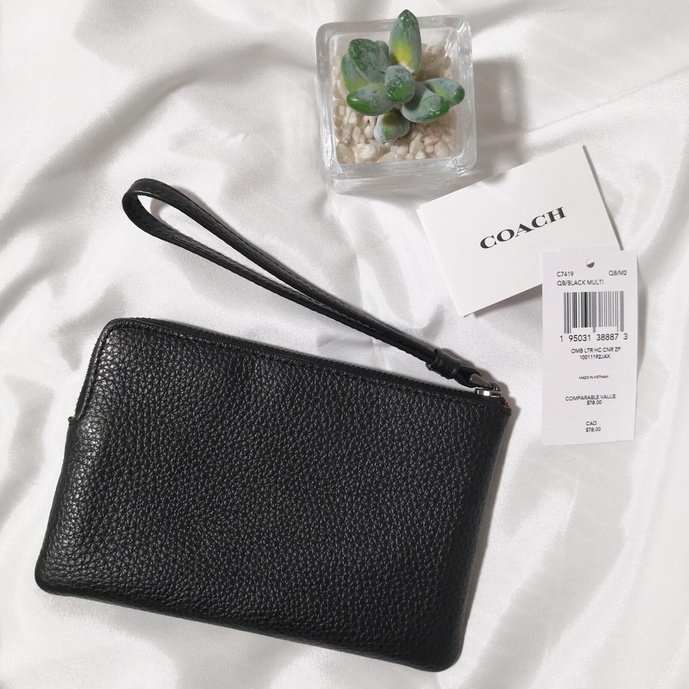 NWT COACH Corner Zip Wristlet With Horse And Carriage C7419 $78 Refined pebble leather Two credit card slots Zip-top closure, fabric lining Wrist strap attached 6 1/4" (L) x 4" (H) x 1/2" (W) WE CAN NOT GUARANTEE DELIVERY TO ANY COUNTRY EXCEPT THE USA. You will have to take the risk. NO REFUND ON COST OF DELIVERY OR RETURNS. WE ARE NOT RESPONSIBLE FOR ANY CUSTOM DUTYS OR ANY OTHER COST FOR INTERNATIONAL DELIVERY