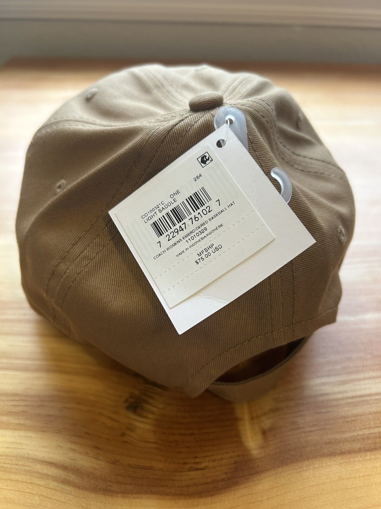 Material: 100% Cotton Size: One Size Style: Baseball Cap Vintage: No Department: Women Pattern: Solid Features: Adjustable Brand: Coach Personalize: No Accents: Embroidered Handmade: No Color: Light Saddle