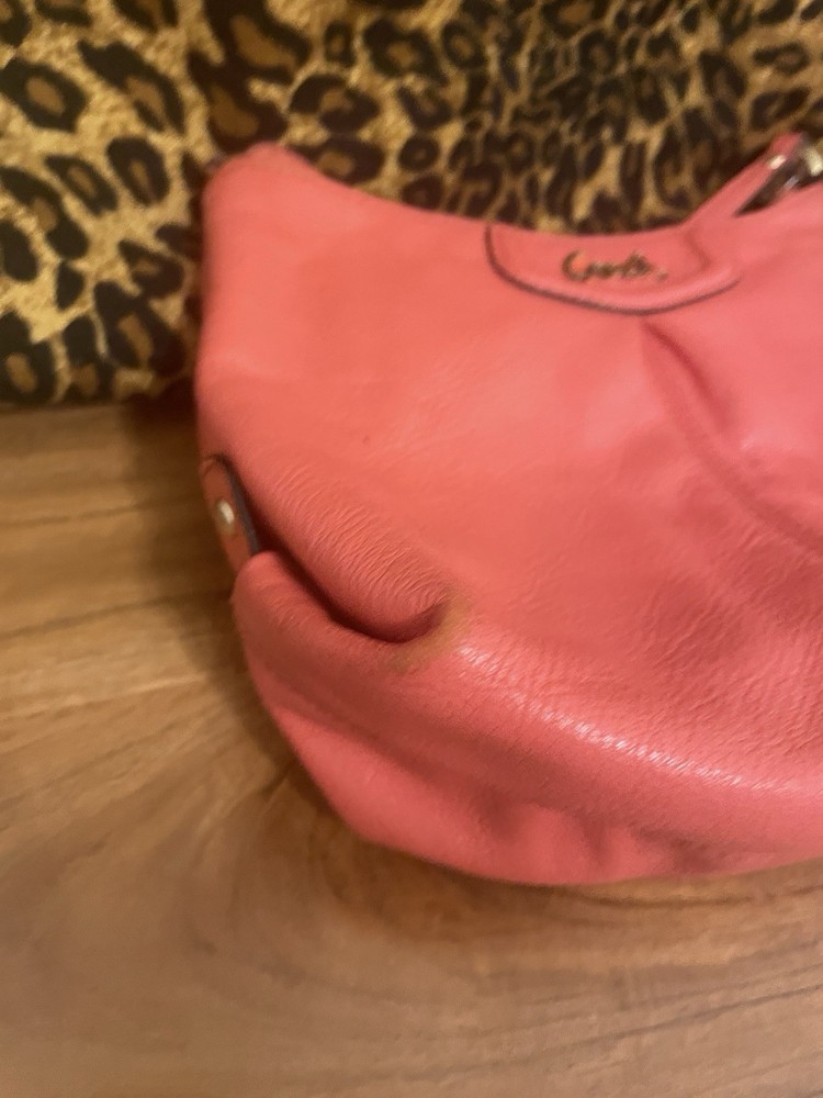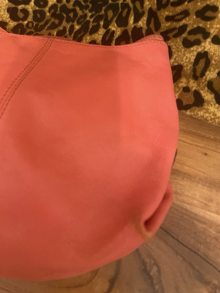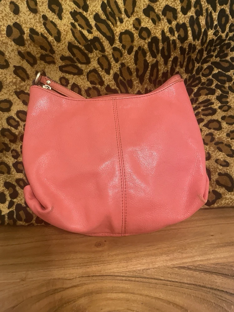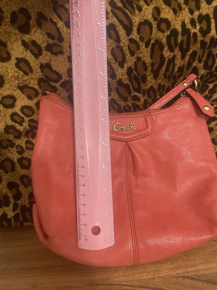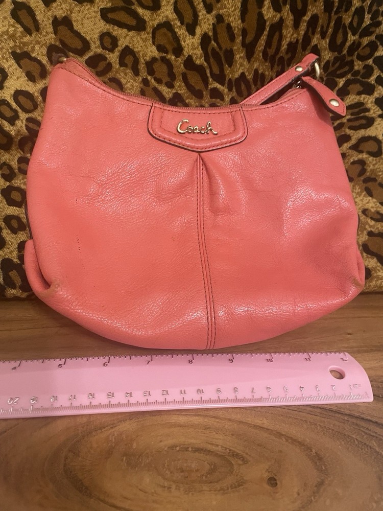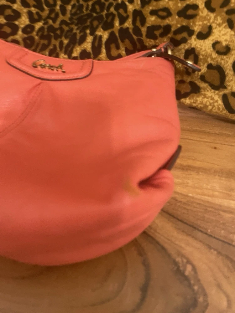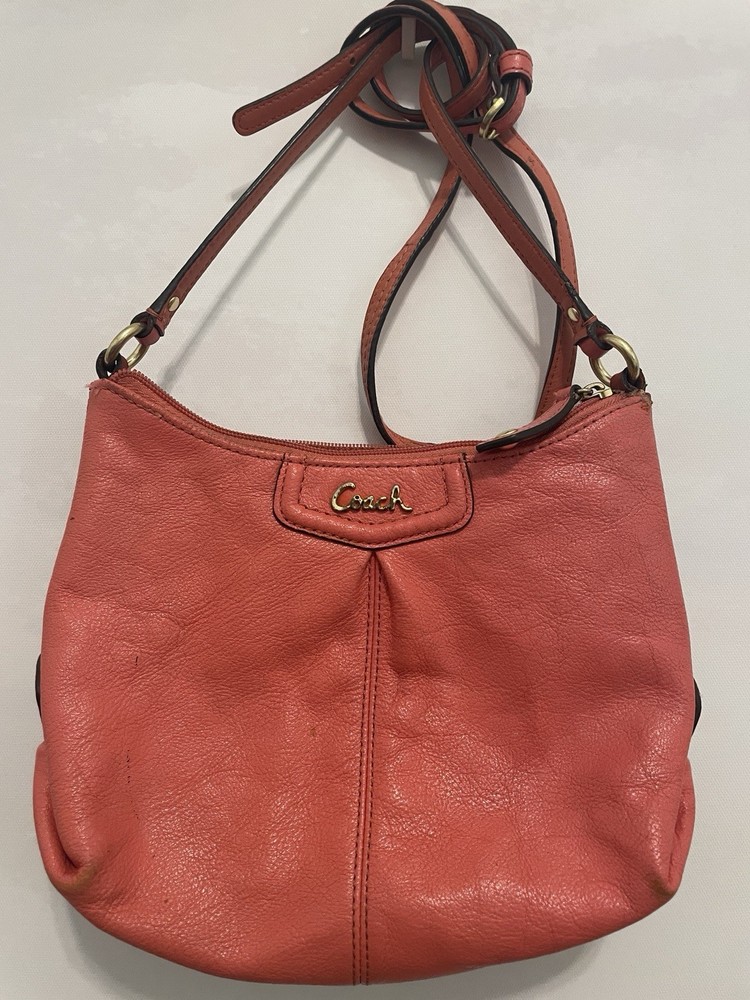 COACH Handbag Coral Leather small leather Crossbody bag purse Coral coach leather crossbody handbag preowned scuffs stains wear long adjustable strap 1 interior pocket see pictures for accurate description NO returns thank you P6