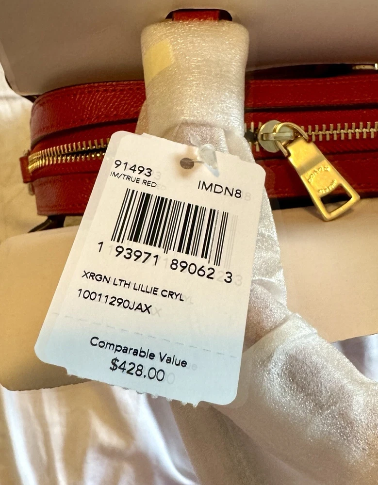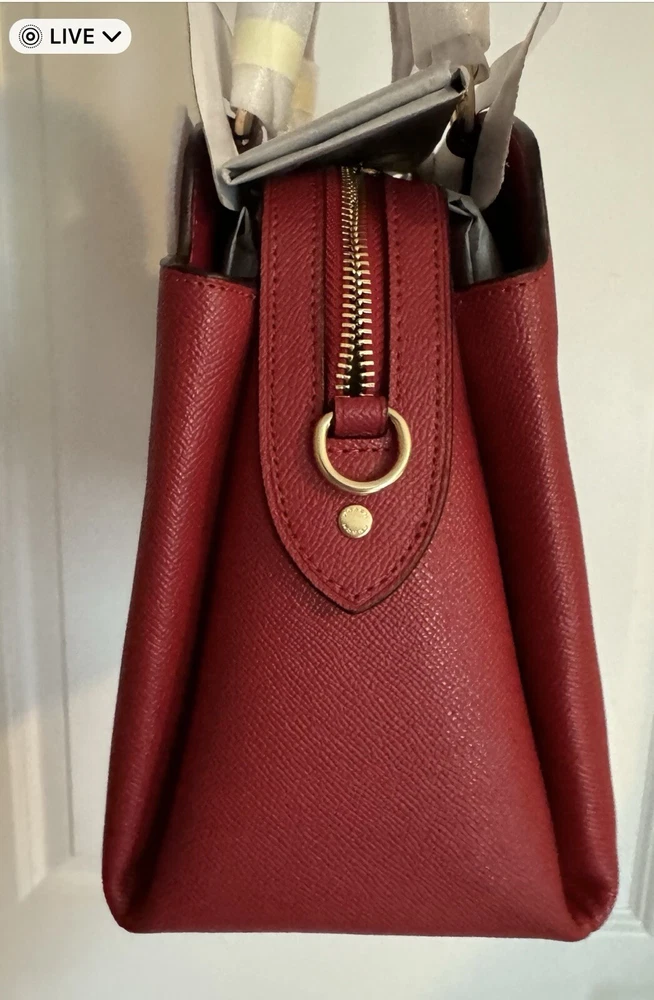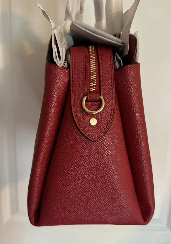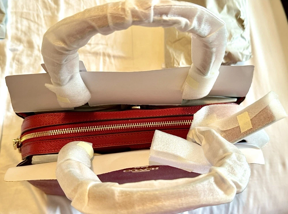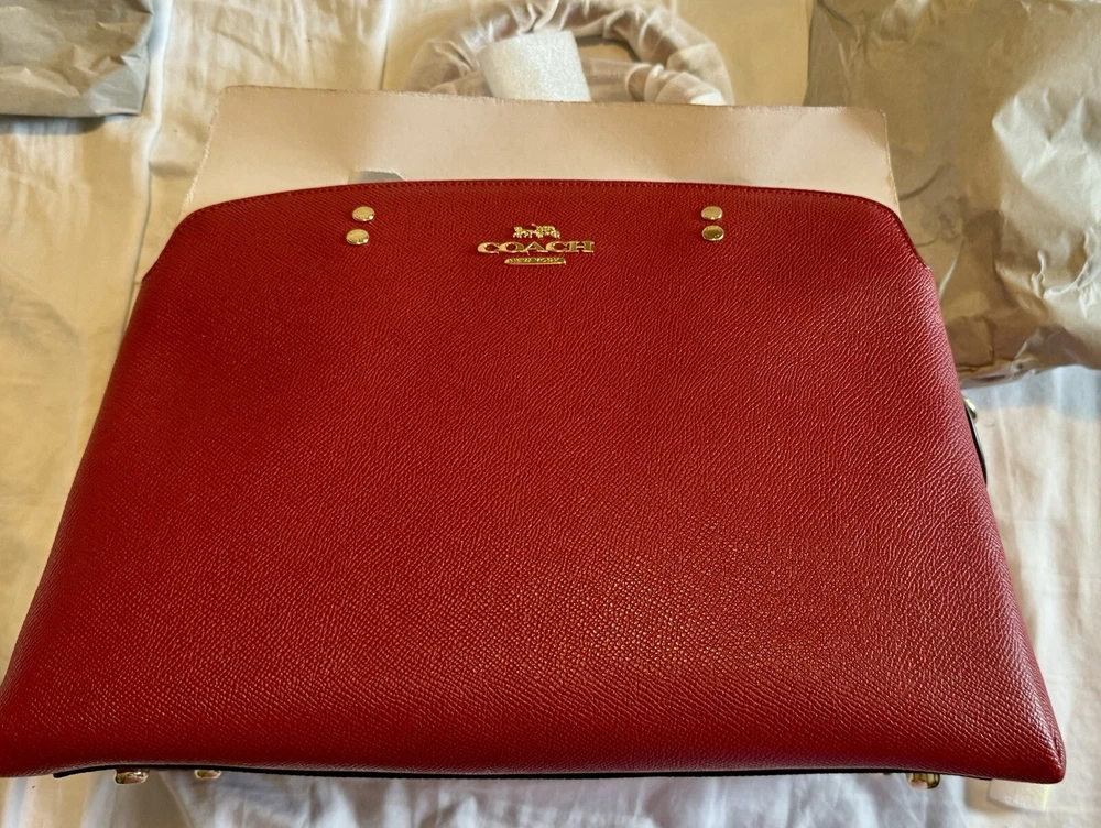 NWT COACH LILLIE CARRYALL LEATHER GOLD/CHERRY RED TOP HANDLE WITH SHOULDER STRAP. Condition is New with tags. Shipped with USPS Priority Mail.
