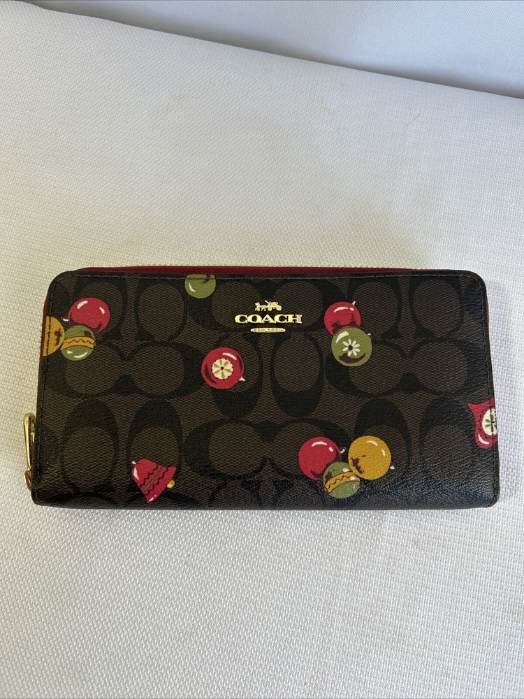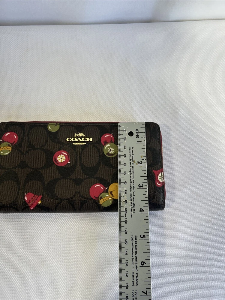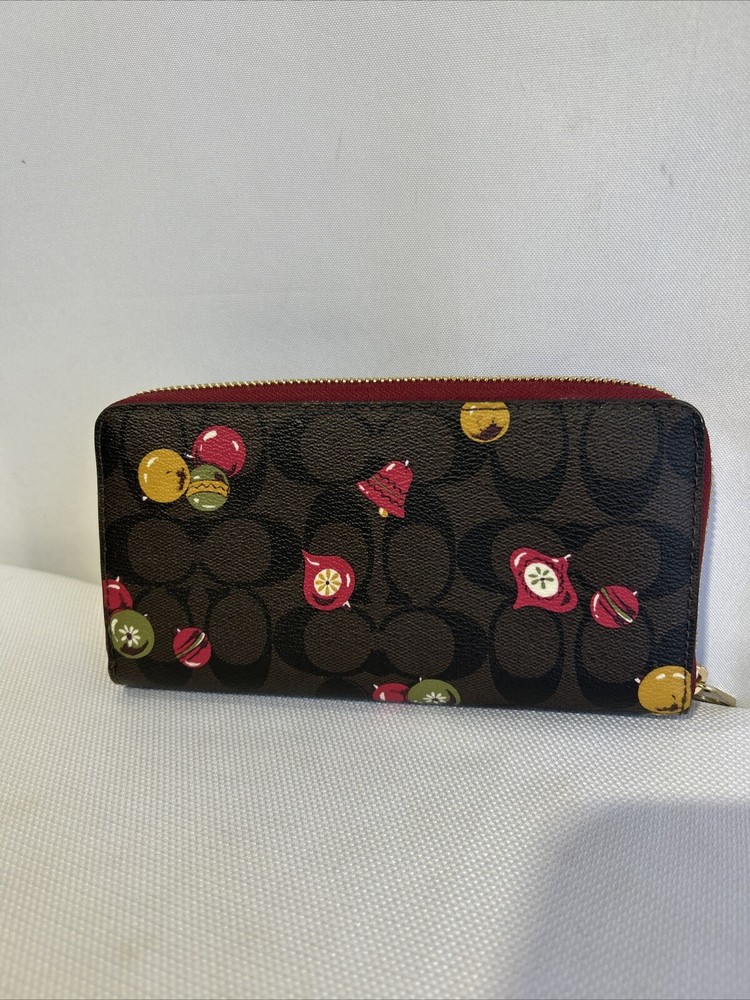 COACH Long Zip Around Wallet In Signature Canvas Ornament Print C7411 Christmas