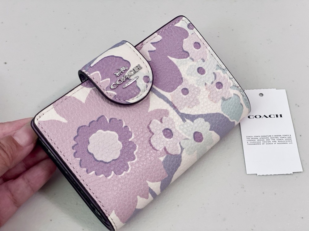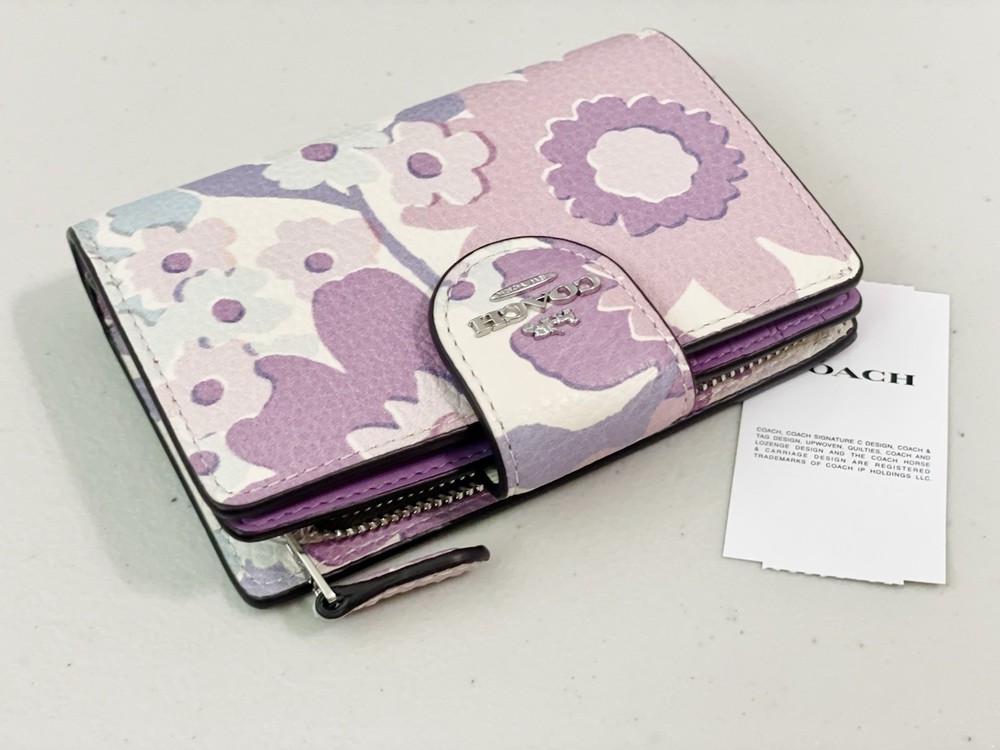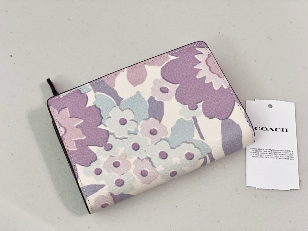 COACH Medium Corner Zip Wallet With Floral Print color: Ivory/Purple/Pink Multi 100% Authentic Style No. CBO31 Brand new with tags Product Details: Limited edition Printed Coated canvas and smooth leather Seven credit card slots Zip coin pocket Snap closure Bill compartment ID window Size: 5.0" (L) x 3.5" (H) x 1.0" (W) Style No. CBO31 ALL ITEMS ARE GUARANTEED 100% AUTHENTIC and BRAND NEW! Price is firm