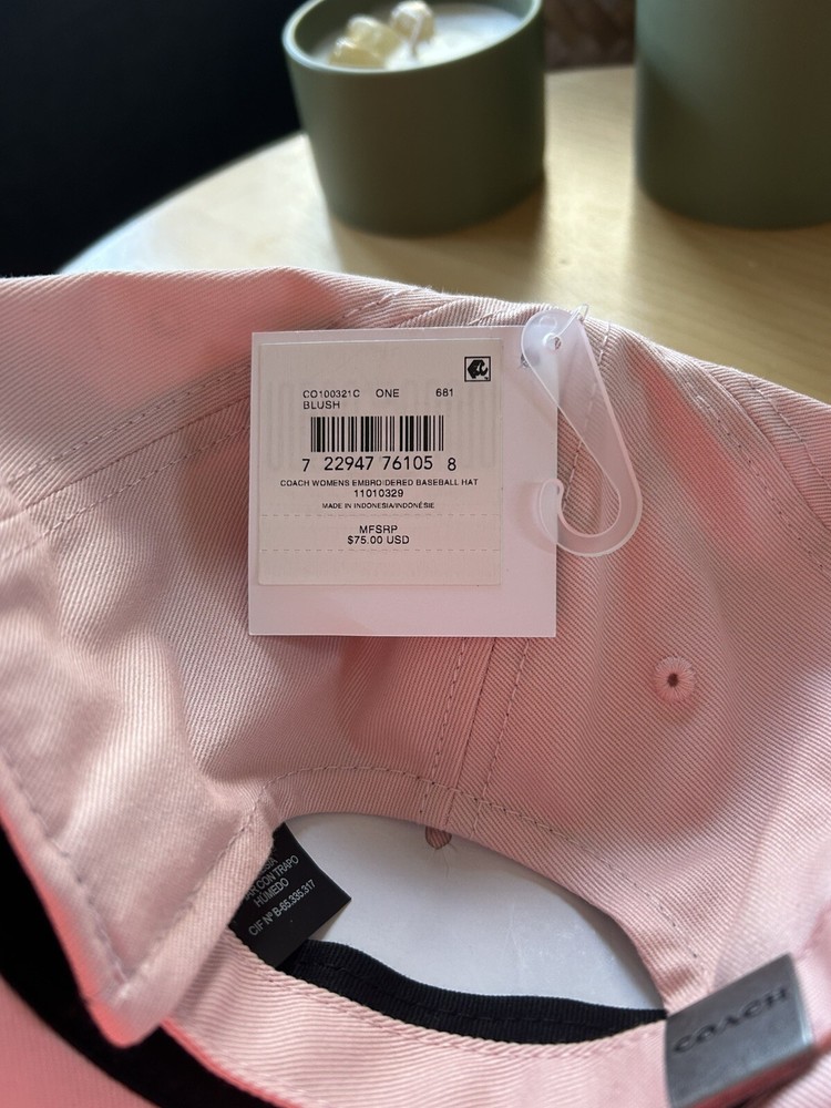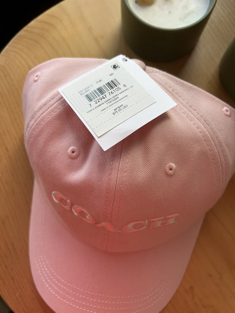 Elevate your accessory game with this stylish COACH Women's Baseball Cap in Pink. The cap features an elegant solid pattern with delicate embroidered accents that add a touch of sophistication to any outfit. It is made of 100% cotton material, which makes it breathable and comfortable to wear for long periods. The cap is adjustable to fit all head sizes and is perfect for any casual occasion. Its timeless design makes it a great addition to any wardrobe, and it is an ideal gift for any fashion-conscious woman. Get this COACH Women's Baseball Cap today, and elevate your style to the next level! Thank you!