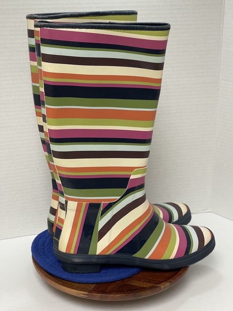 Coach “Pammie” mid calf striped rubber rain boots Size 7B Multi color