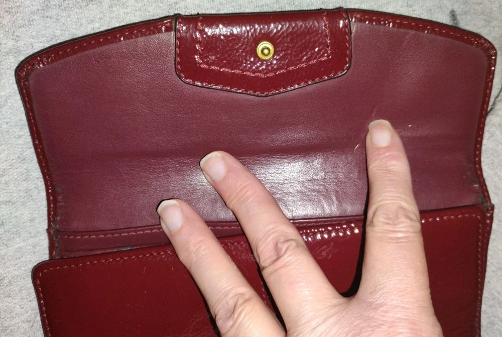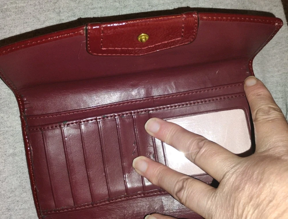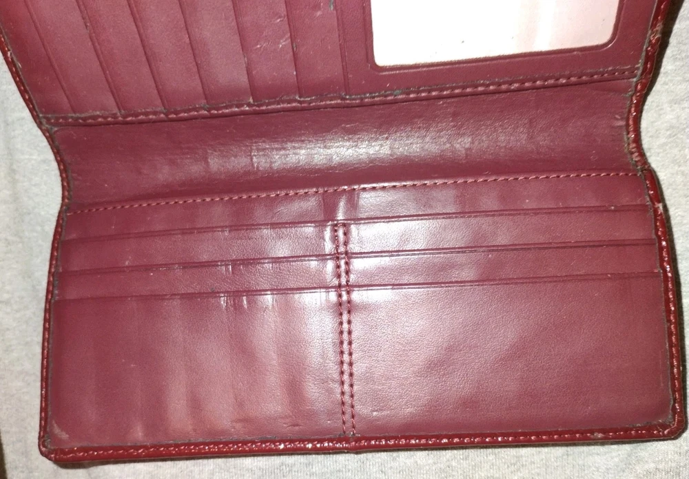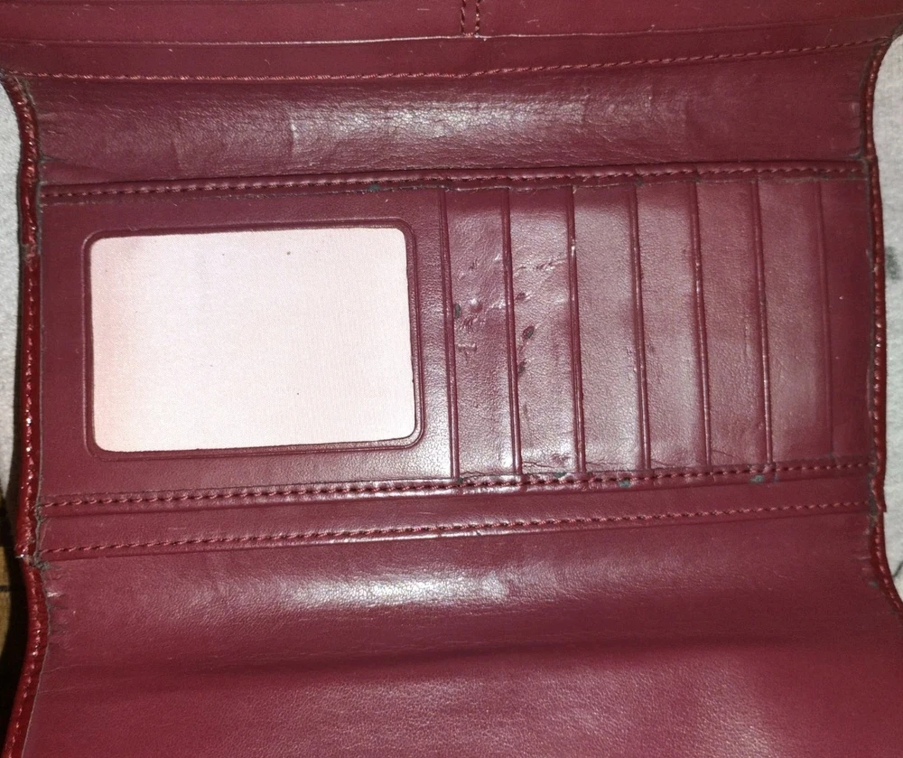 Absolutely love this vibrant red wallet! It's got some character from previous use but still looks fantastic and holds everything I need. Arrived quickly and the seller was super friendly. Perfect for adding a pop of color to my bag!