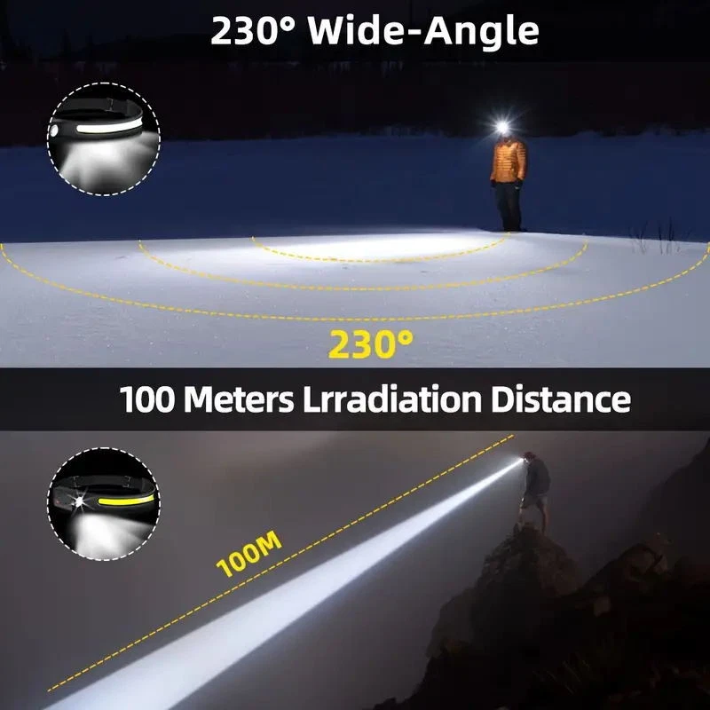 COB LED Headlamp USB Rechargeable Headlight Torch Work Light Bar Head Band Lamp