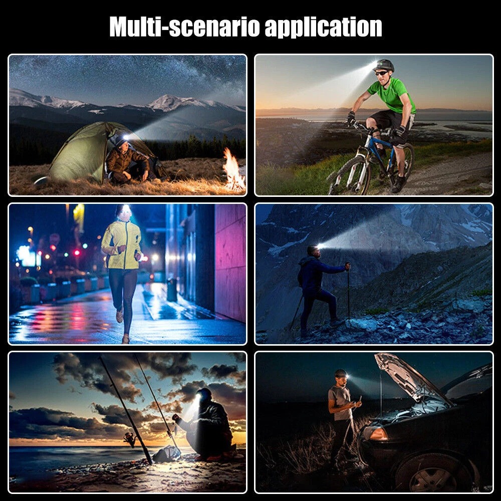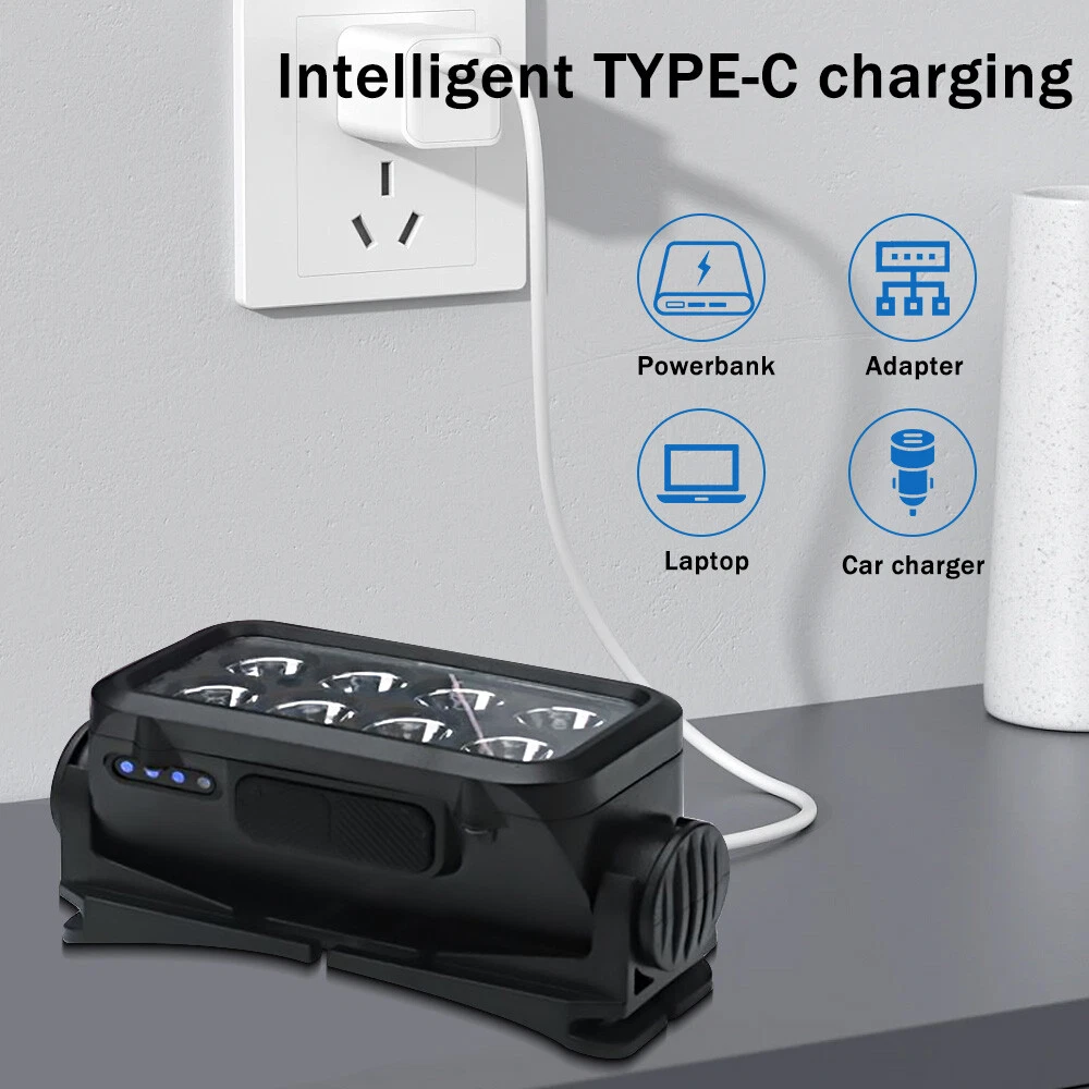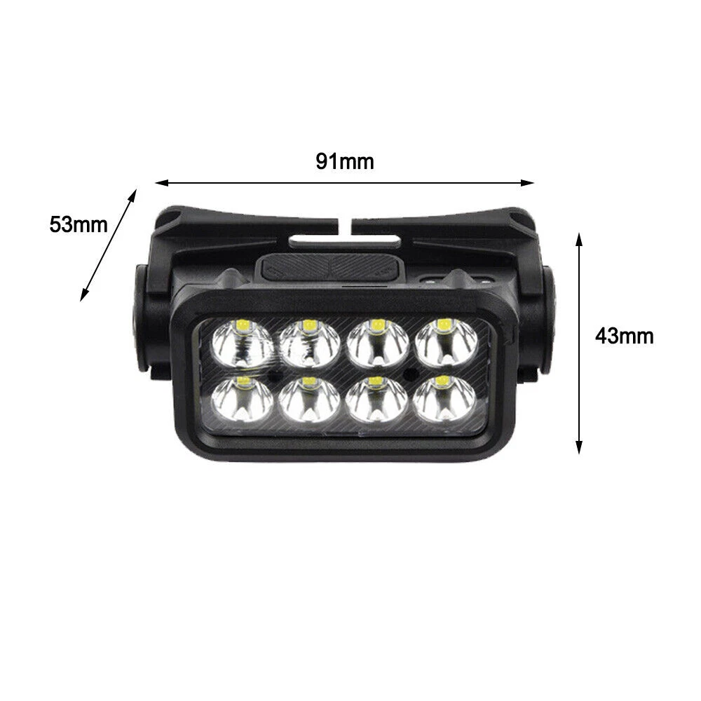 COB LED Headlamp USB Rechargeable Headlight Torch Work Light Bar Head Band Lamp Describe: ⭐1.Material: high-quality ABS+silicone material, strong and durable. ⭐2.Headband: Comfortable and highly elastic headband, firm and not easy to fall, detachable and easy to clean. ⭐3.Adjustable: the headlight back clip bracket can be adjusted between 0-90°, which is convenient and practical. ⭐4.Charging method: Type-C charging, compatible with laptops, charging treasures, etc., convenient and powerful. ⭐5.Power display: percentage power display, accurate control of remaining power. ⭐6.Applicable to: very suitable for outdoor camping, hiking, fishing, emergency and other scenes. Specification: Name: Outdoor USB charging sensor headlight Colour: Black Lamp bead: COB Lumen: 500lm Charging method: Type-C Charging voltage: 5V/0.5A Battery capacity: 1200mAh Charging time: 1.5h Battery life: 2-4h White lighting mode: 5 gears (white light strong light-white light weak light-white light low light-white light flashing-white light S0S) Sensing distance: within 15cm Waterproof grade: IPX4 Maximum range: 200m Net weight: 96g Package size: 9.8*5*8.2mm packing list: 1 * headlight 1 * headlight strip 1 * charging cable