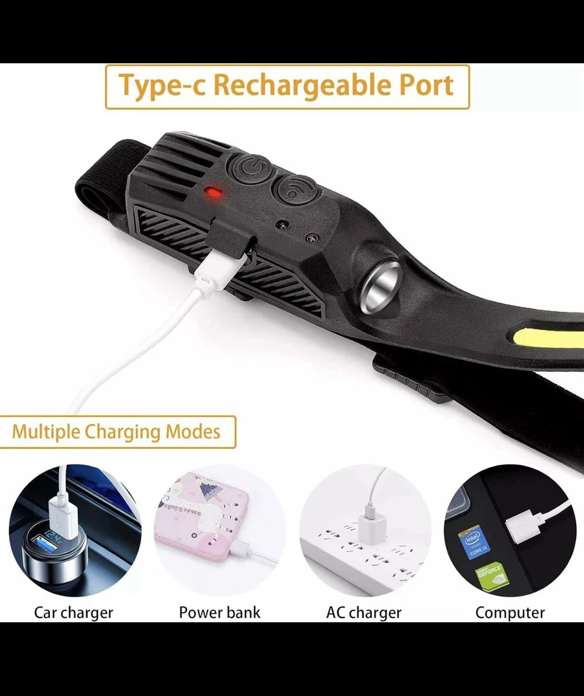 Illuminate your path with the COB LED Headlamp, a versatile and durable headlight that blends functionality with comfort. Designed for practical use, this headlamp features a powerful LED bulb, offering a substantial operating range of up to 150ft, to keep your hands free for other tasks. Its sturdy construction is matched by a sleek black design, ensuring it stays put and looks good whether you're camping, fishing, or simply navigating through the dark. The headlamp is powered by a reliable lithium battery and includes a USB charging source, making it convenient to recharge and reuse. With additional features such as being waterproof and coming with batteries included, this headband lamp is an essential tool for anyone who finds themselves in low-light situations. Lightweight at just 2.5 ounces and with an easy-to-adjust headband, it ensures a secure fit for all-night comfort.