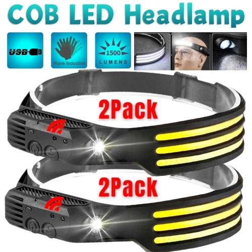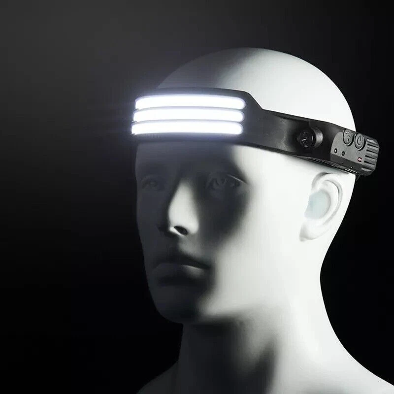 COB + LED Rechargeable Headlamp Headlight Torch Work Light Head Band Lamp 6000K Features: ❤️ Bright & 230°Wide Beam: Featuring high bright COB and LED light source, this wide beam headlamp offers a 230°wide-angle illumination and 1200Lumens instead of lighting up only a small area in front of you like traditional headlight. It has an extra bright LED spot light suitable for a variety of scenarios to meet your various needs, for example, camping, running, biking, working and repairing. ❤️ Motion Sensor & Easy to use: This rechargeable induction headlamp designed with motion sensor mode, easily control the headlamp even if you have gloves on, won't dirty the unit as well as the gloves. Press the sensor button when the light is on, then you can switch the light ON/OFF by waving your hand. If there is any obstacle within 10 cm in front of the sensor receiver the light will also ON/OFF when sensor mode. Red and green indicator lights are on together when motion sensor mode. ❤️ For 3 White Light Model: lighting modes: COB 3 White High Mode, COB 3 White Low Mode, LED High Mode and LED Low Mode. Easy to operate, short press power button to switch the mode, long press to turn on strobe mode. ❤️ USB Rechargeable Headlamp: Built-in rechargeable 1500mAh large capacity battery. Not only saves the cost of replacing batteries but environmentally friendly. Charging time: 2h fully charged. Working time: 2-8h after fully recharged. Note: Working time will vary due to different lighting mode you use.) ❤️ Lightweight & Adjustable Headband: The led headband is made of ABS and silicone, it is soft and comfortable, just only 3.52 ounces. It's possible to fold but not affect the use, light weight and small size design can easily fits in your pocket. IPX4 waterproof means it is protected against splashing water from all angles, you don't need to worry if it rains or snows unexpectedly. Specification: Touch switch: strong light -> medium light -> long press and fast flashing, sensor switch Battery type: polymer lithium battery 1200mah Working voltage: 3.0V-4.5V Waterproof rating: IPX4 (not soaked in water) Body material: silicone Charging time: 3 hours (First gear) COB highlight: 350 lumens, lighting time 2.5~3H (Second gear) COB low light: 130 lumens, lighting time 3.5~4H (Third gear) XPE highlight: 120 lumens, lighting time 4~4.5H (Four gears) XPE low light: 50 lumens, lighting time 6*6.5H Package included: 1/2x Head Lamp 1/2x USB Cable Feedback: 1) Your Feedback is really important to us,please take a few seconds to leave great feedback if you are satisfied with our product or service, thank you so much! 2) We always offer the lowest price for best goods and service to you. 3) Please contact us before leaving neutral(3 stars) or negative(1-2 stars) feedback.We will try our best to solve the problem and leave you a happy shopping mood here. Thank you!