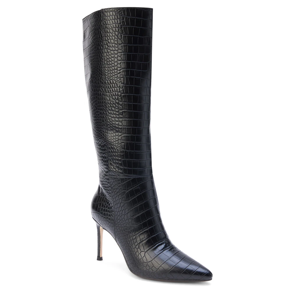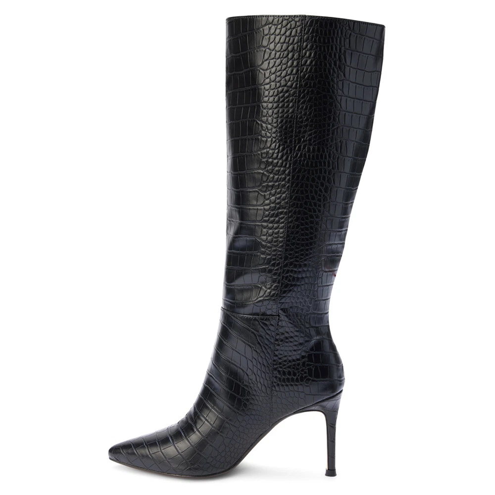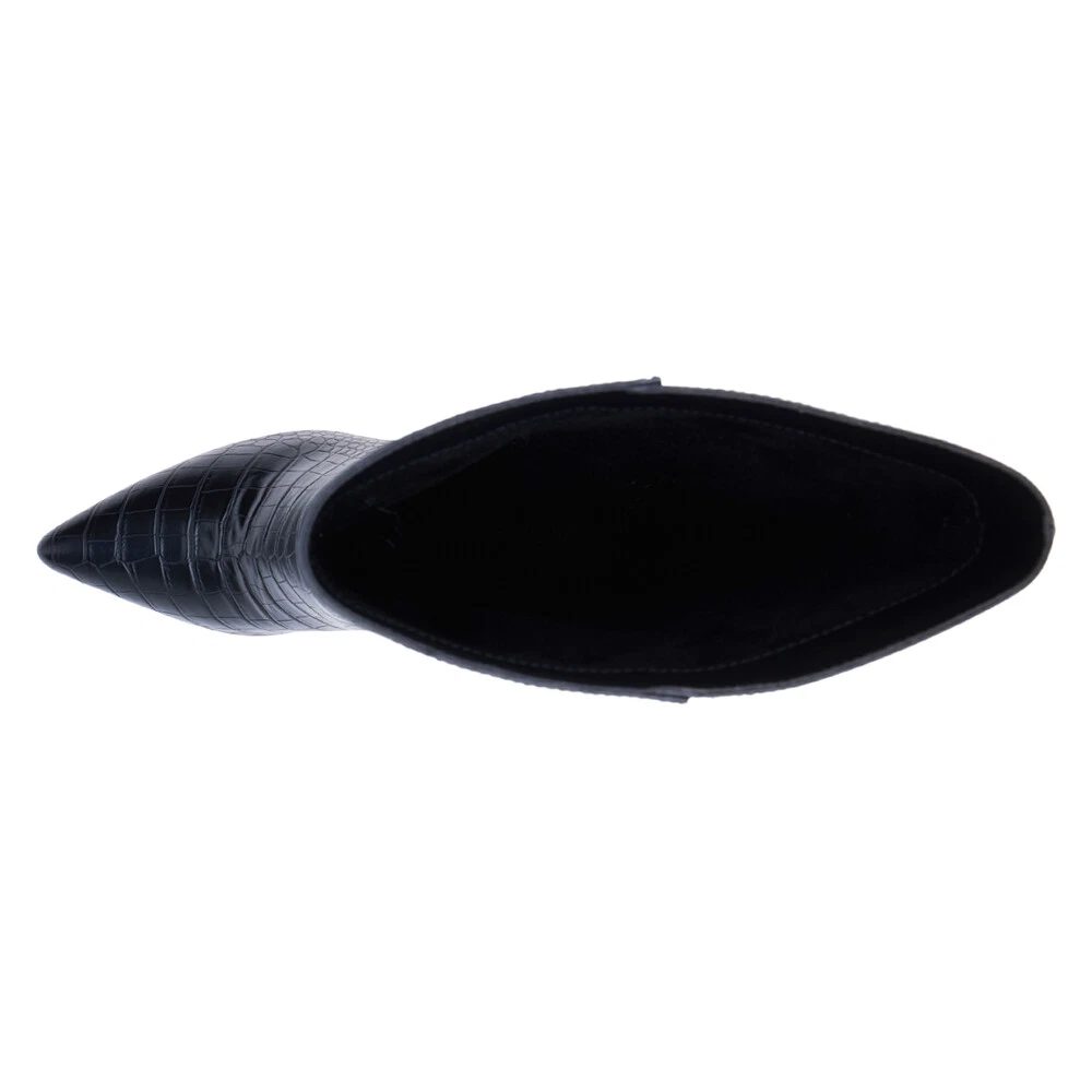 Alina Croc Pointed Toe Pull On Cowboy Boots Product Details Synthetic upper Pull on entry with zippered closure Cushioned footbed for comfort Rubber outsole Heel Height: 2.5 inches, Shaft Height: 6 inches, Circumference: 10 inches Get this vegan, tall boot on a stiletto heel from your favorite shoe place Coconuts by Matisse! Additional Details Color: Black Occasion: Casual Gender: Womens Age: Adult Brand: COCONUTS by Matisse